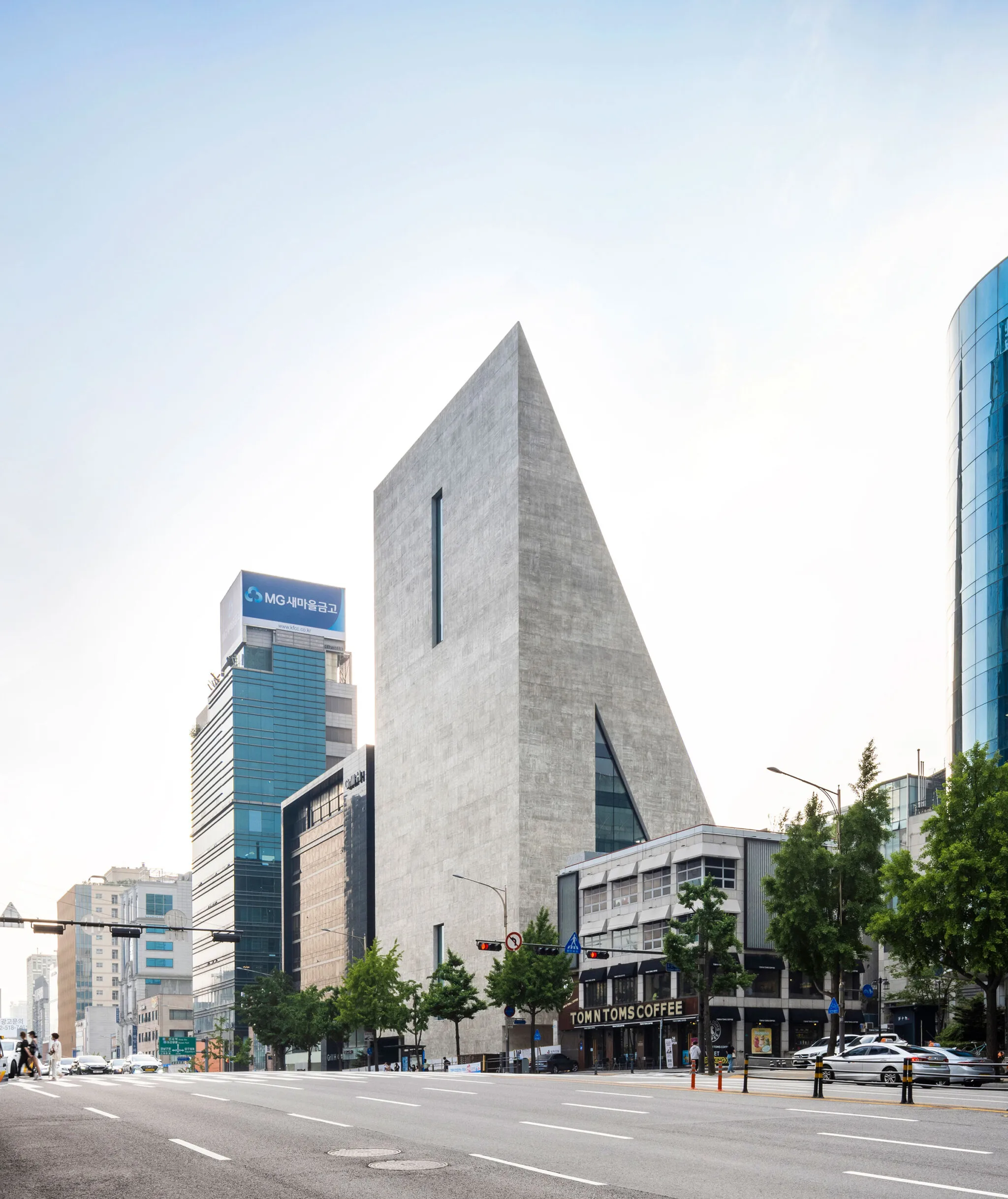 カンナムの大通りに目を引く建物がある。堅牢な外壁、そして鋭角に切り立った壁面。ヘルツォーク&ド・ムーロンによる建築のSTソンウンビルだ。2021年にオープンしたソンウン文化財団による複合文化スペースとなっている。ソンウン文化財団は1989年に設立された非営利団体で、2001年から韓国の有望な現代アーティストを育成し、受賞者のキャリアを促進する「SONGEUN アートアワード」を開催している。