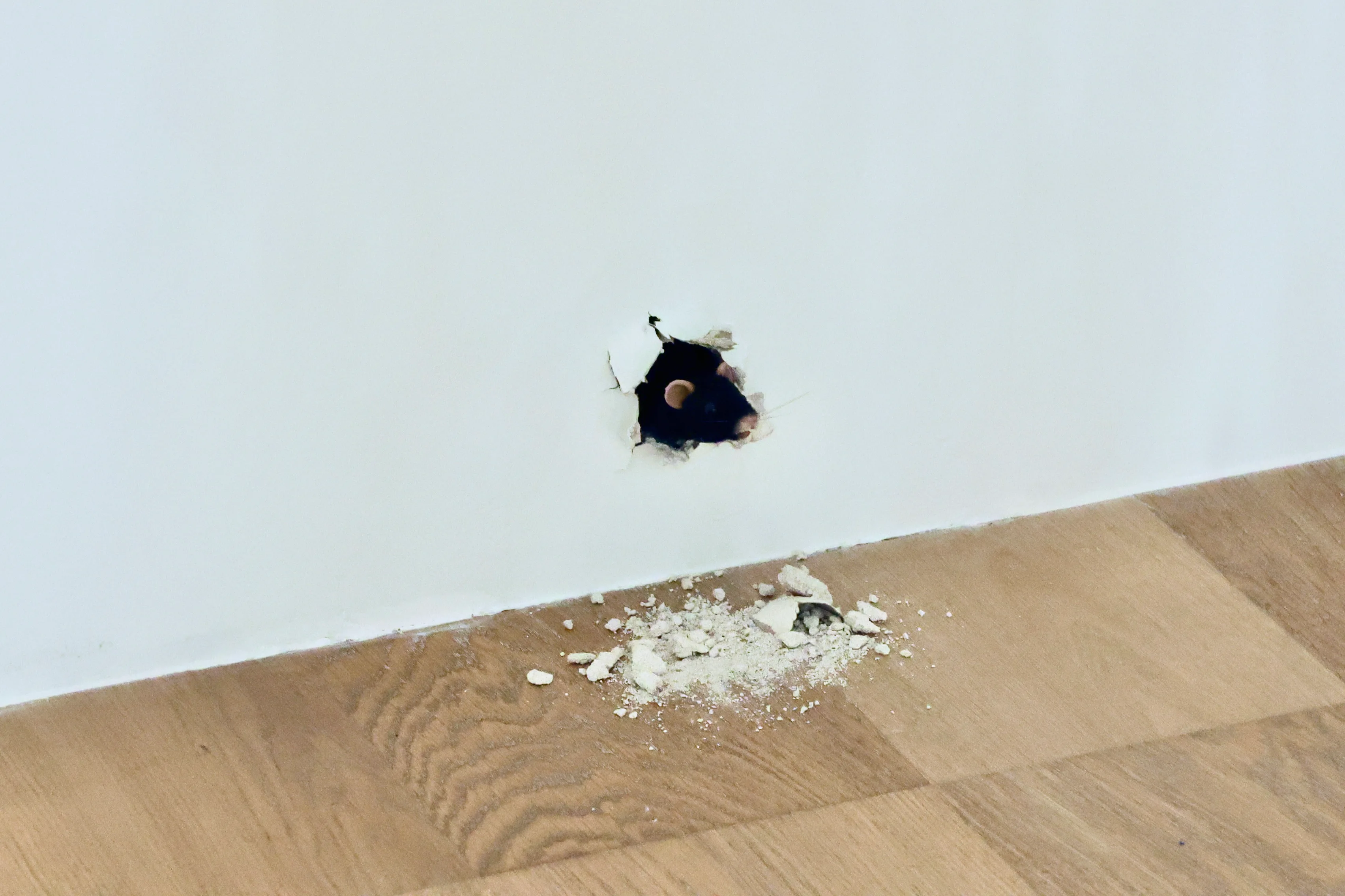 日本でもおなじみのライアン・ガンダーの作品も。壁から突き出たネズミがしゃべりかけてくる。