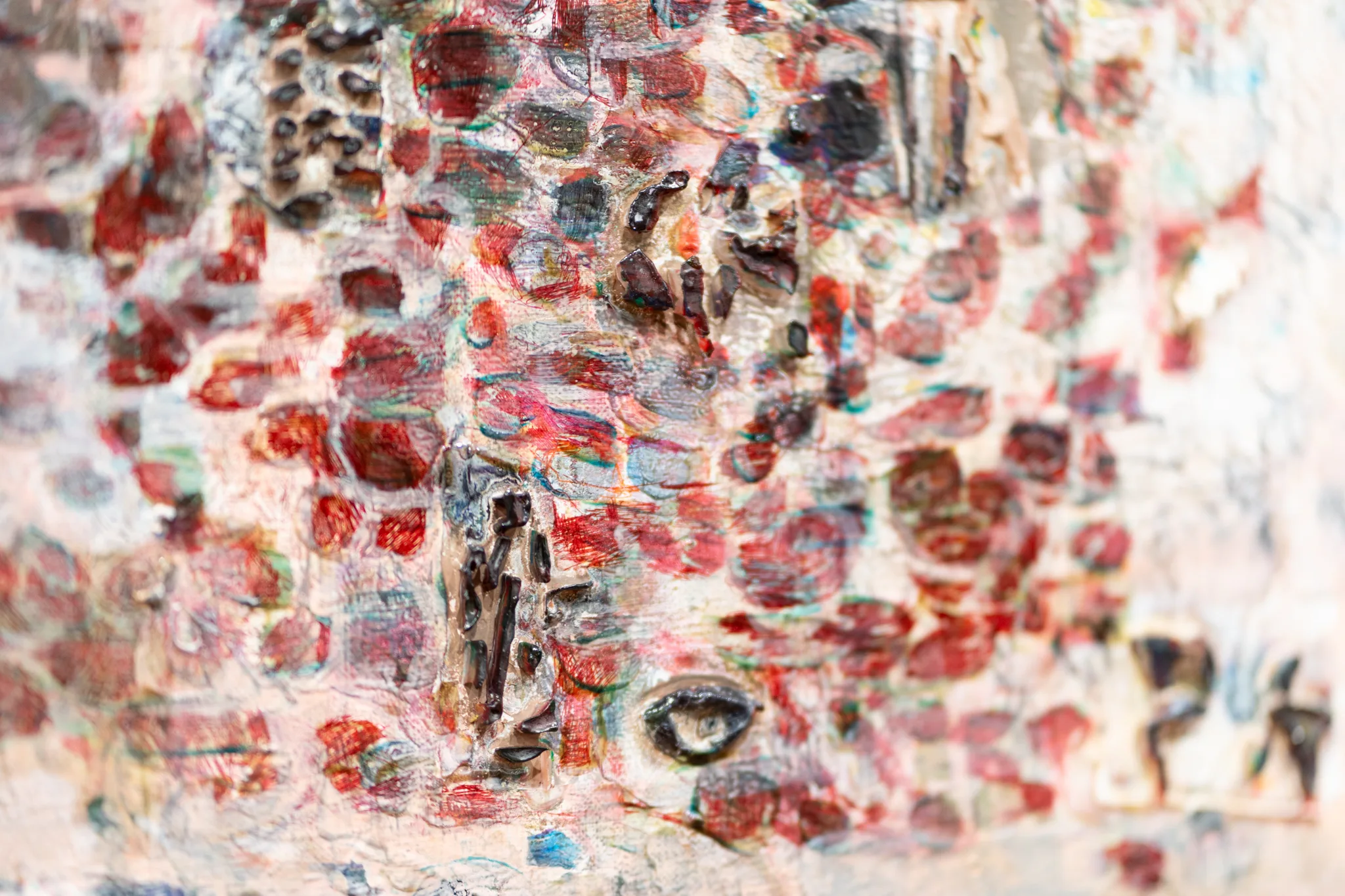 「彼の場合は、抽象絵画でありながら、ある意味非常にコンセプチュアルな部分がある。人間の認識や、日々の生活、言語との関わりなど、人間の思考や認識と『描く』ということとの関係についてつねに考え続けている作家です。そして、その思考が最終的に点描になる。彼の作品は、シリアスな抽象的な絵画のようでいて、どこか飄々としたユーモアもある。それがおもしろい」(福士)