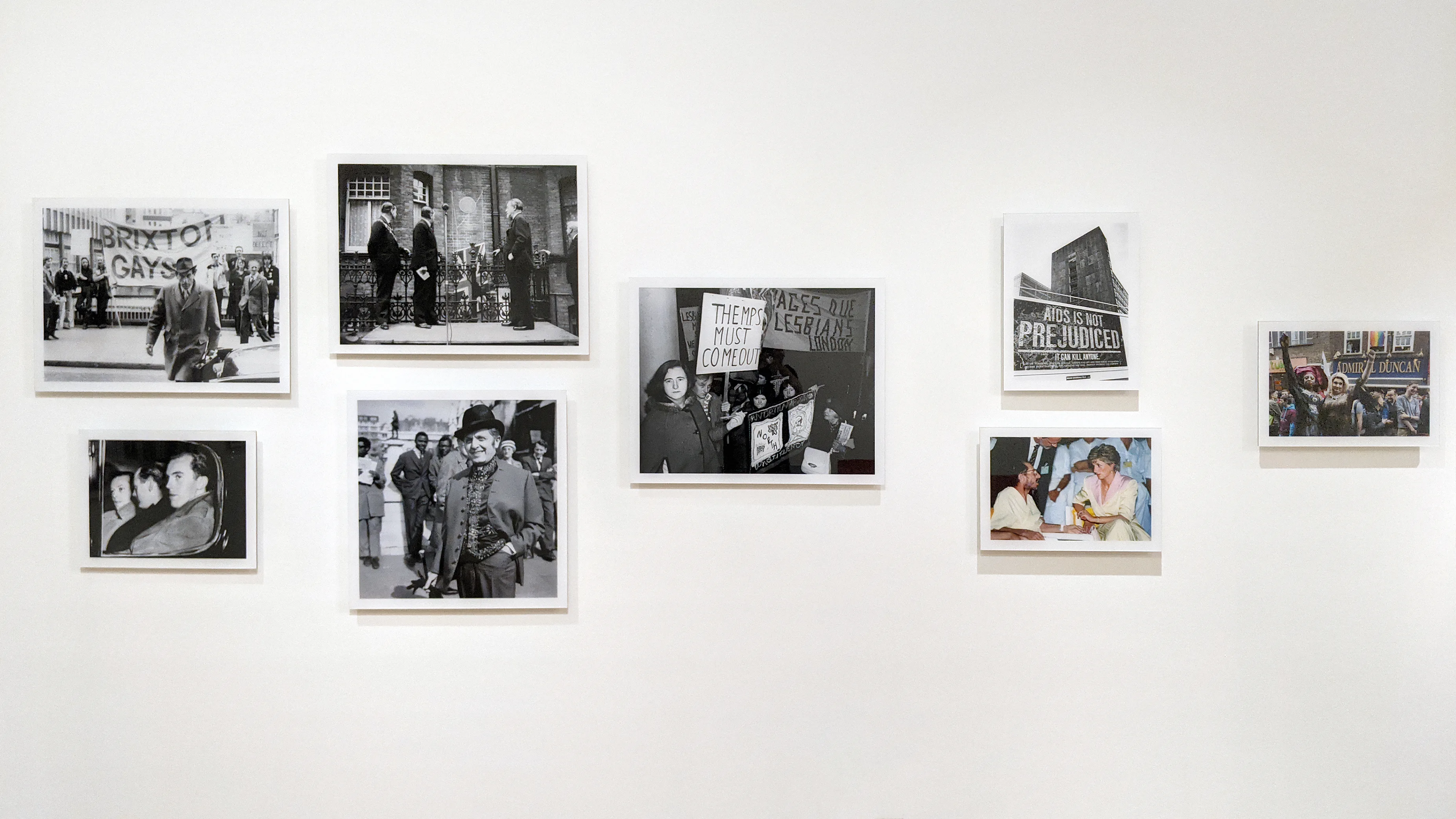 いっぽうで、展覧会のキュレーションについてはいくつかのメディアから疑問が呈されもした。たとえば、ハフィントンポスト紙のエラ・ブレイドウッドはGetty Imagesによる写真展がいくつかの重要な歴史的事実に言及していないことを指摘する(*1) 。たとえば、ダイアナ妃がエイズ陽性者を訪ねた美しい瞬間を切り取ってはいても、その時期に何千万人というゲイ・バイセクシュアル男性が命を落としたことには触れられていない。また、イギリスで唯一オープンリーゲイのサッカー選手として活躍したジャスティン・ファシャヌが「MAKE SPORT EVERYONE’S GAME(スポーツはみんなのもの)」というプラカードを掲げてプレイした試合の様子は展示されているが、彼がたった37歳という若さで命を絶ったことには言及がない(*2) 。また、ガーディアン紙のオーウェン・ジョーンズは、展覧会全体を通じてクィアのセクシュアリティを表現したコンテンツが少なすぎることを疑問視してもいた。オーウェンは「このスペースは家族向けでもあるため、真正面からのヌード写真などを展示する必要はないだろう」と前置きしたうえで、LGBTQ+コミュニティの経験を語るうえで性愛の問題を避けては通れないこと、東ロンドンにあるダルストン・スーパーストア(Dalston Superstore)など、いくつかのスペースではすでによりラディカルな展示が実践されていることを指摘している(*3) 。