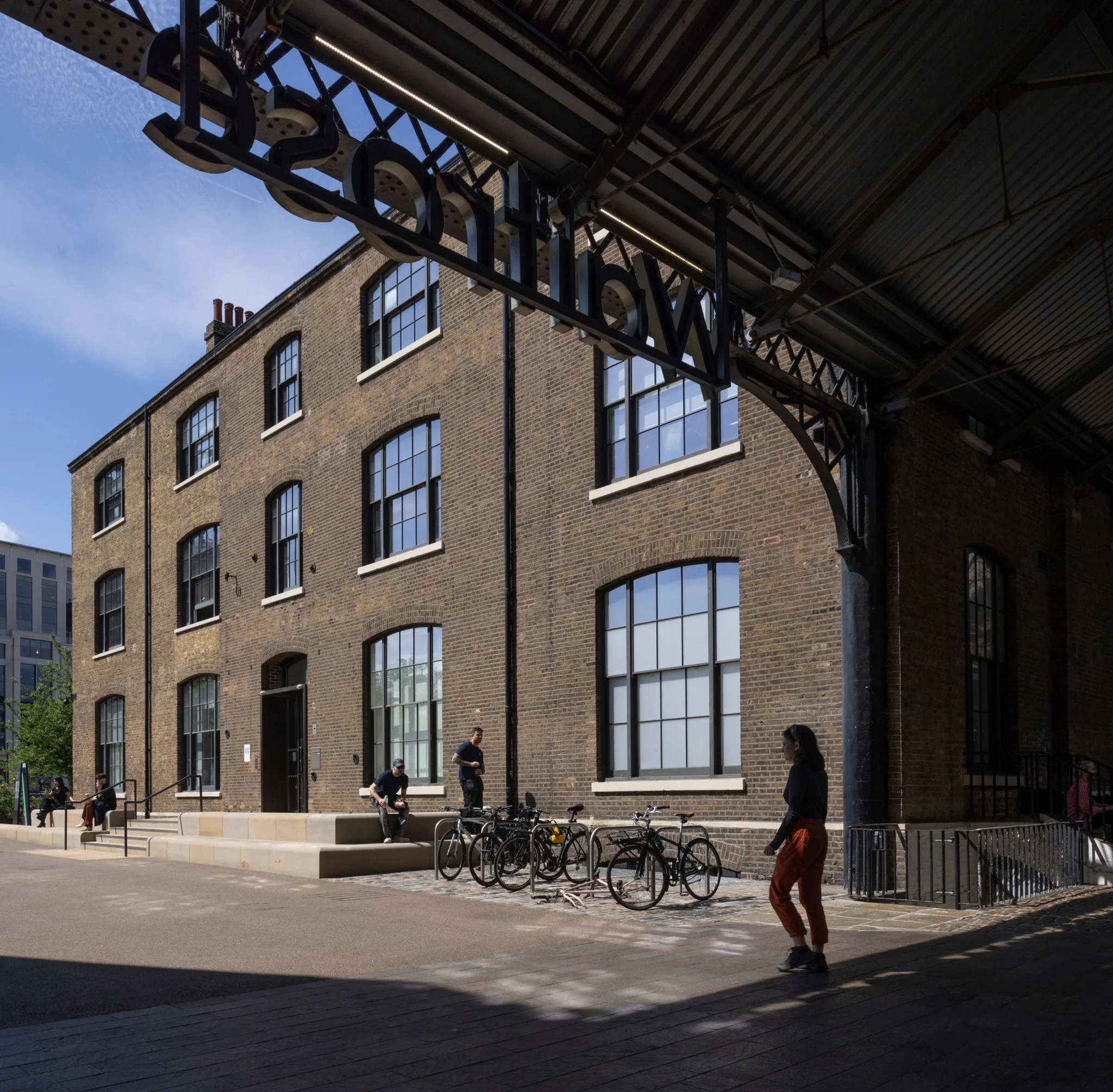 対して、Queercircleが位置するノースグリニッチは、中心部からは多少離れているものの、現代的な街並みが印象的な街だ。駅を出てすぐに広がる「Design District」は、SelgasCanoやHNNAといった8組の有名建築家が手がける16の建物からなるクリエイティブコミュニティである。スタートアップ企業のオフィスやデザインスタジオが立ち並ぶ一角にQueercircleはある。