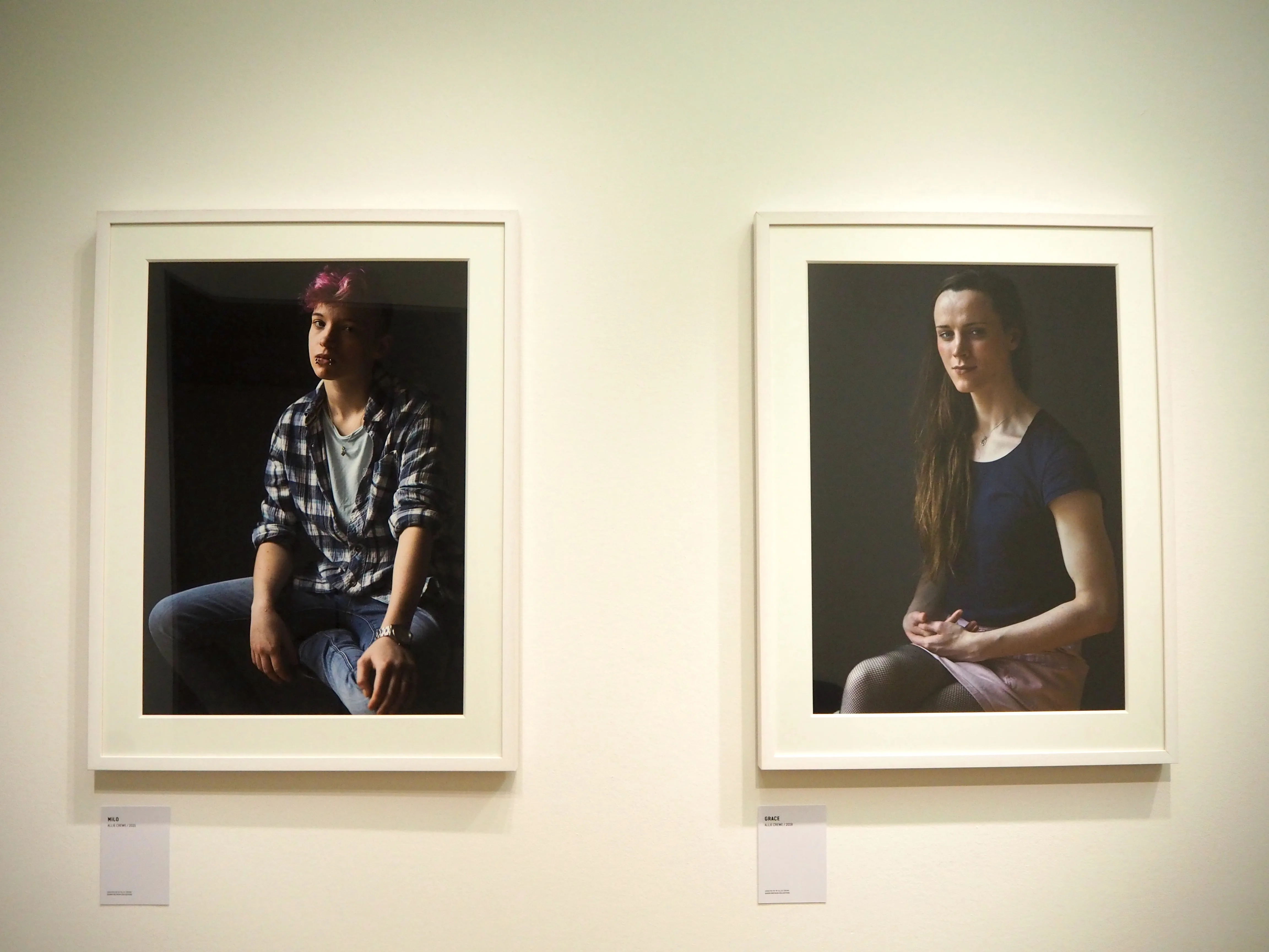 最後の部屋に展示されていたのは、アリー・クレウェ(Allie Crewe)による「You Brought Your Own Light」シリーズだ。まるで合わせ鏡のように展示された2枚の写真のうち、片方はトランス女性、もう片方はトランス男性のポートレートである。クレウェは長年トランスジェンダーのポートレートを撮影し続け、写真を通じて彼らの個人的な物語を伝えている。トランスジェンダーの人々は、公共の場での嫌がらせや医療サービスを受けるうえでのケアの不足など、性的マイノリティのなかでもさらに困難な立場に置かれることが多い。クレウェの写真が国立美術館に展示されていることは、クィア・コミュニティのなかでもその存在が可視化されにくいトランスジェンダーの身体が、芸術的な文脈で祝福されるひとつの節目となるだろう。