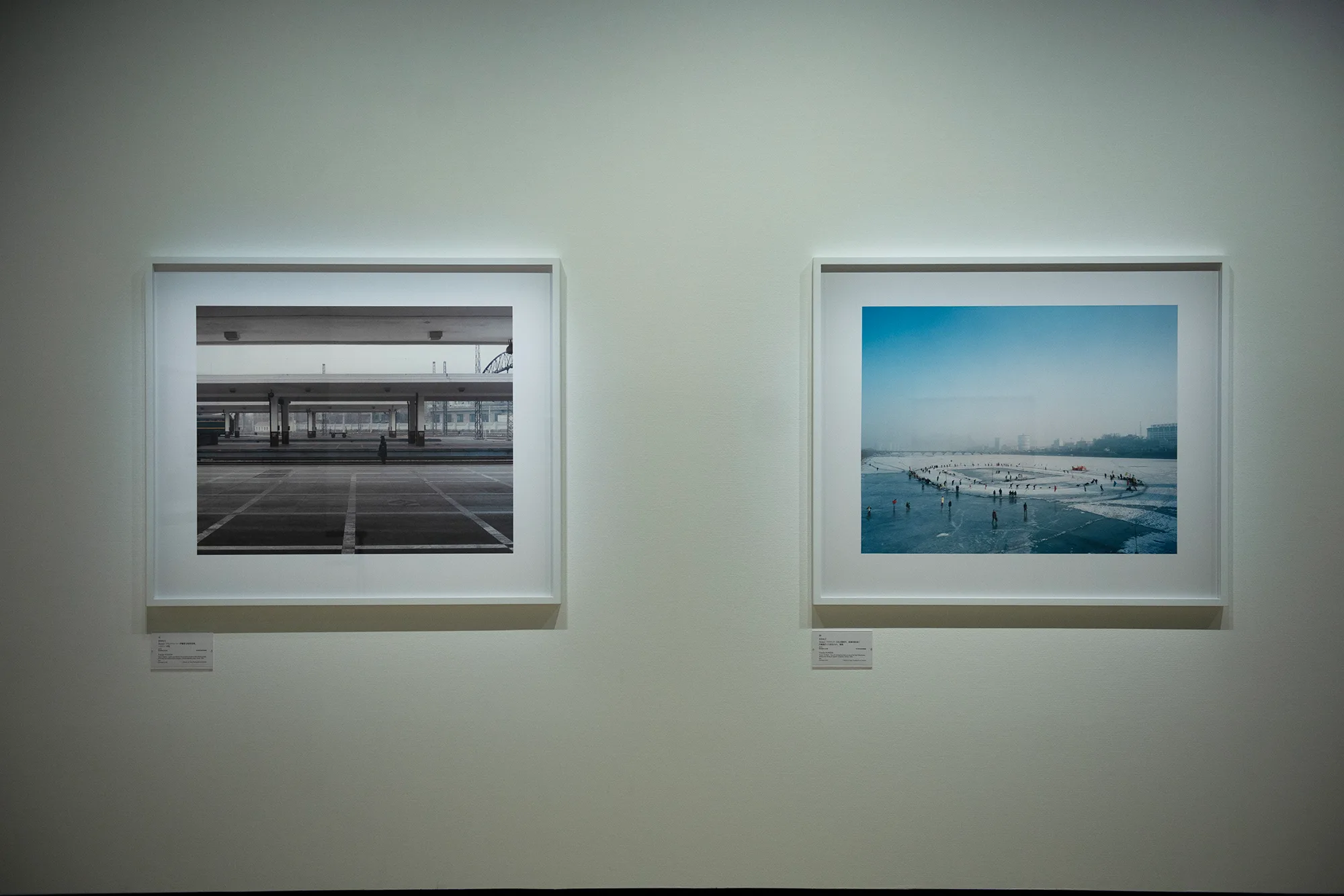 会場風景より、左から米田知子《(未)完成の風景 III》(2015/2023)、《(未)完成の風景 I》(2015/2023) 撮影:筆者