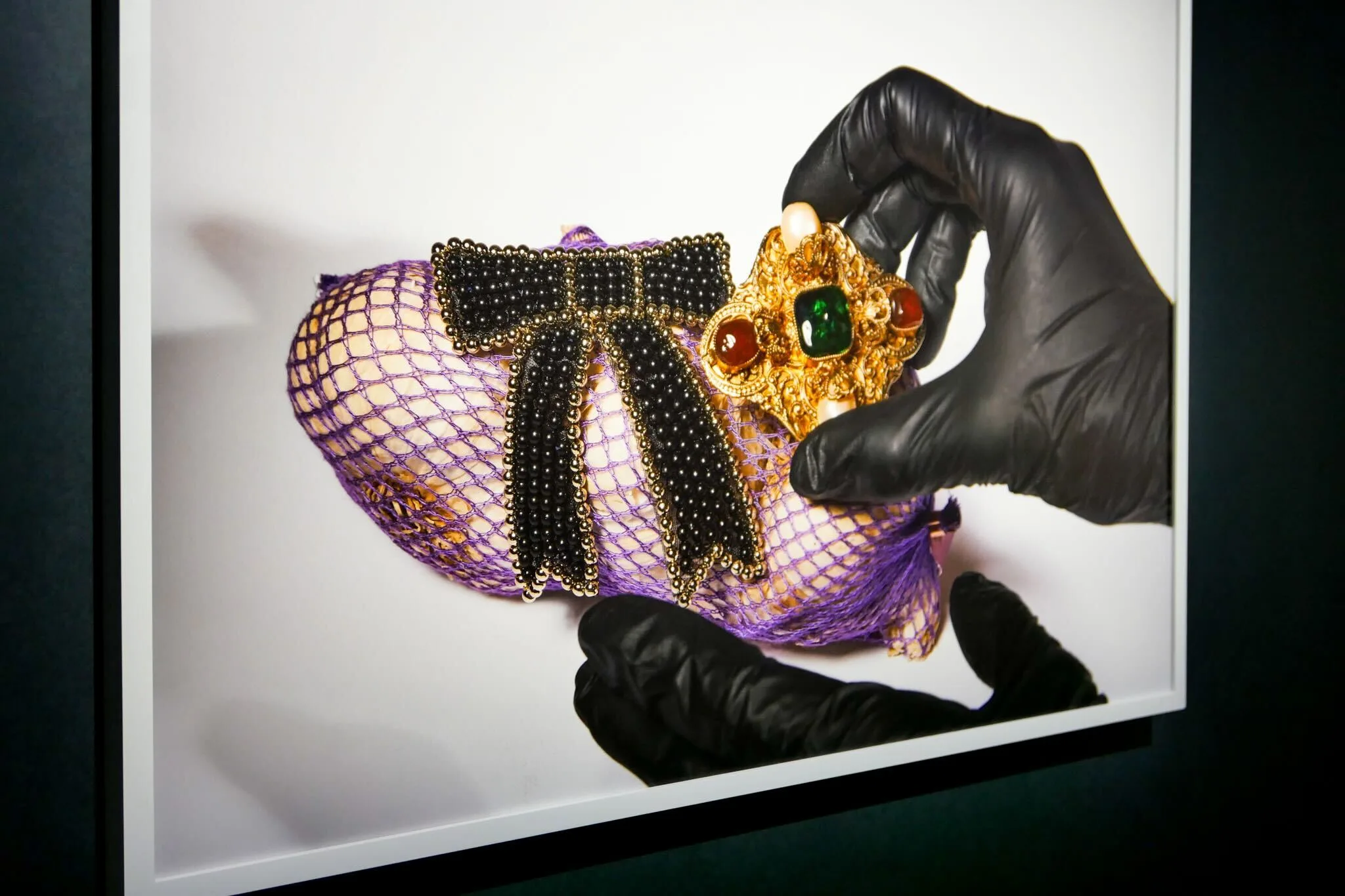 本展は、2025年6月に創刊されたシャネルの「アーツ&カルチャーマガジン」のために制作されたフォトコラージュシリーズで構成される。シャネルとエスリッジの協働は10年以上におよぶが、今回のプロジェクトでは、普段は閉ざされているメゾンのアーカイヴ施設「パトリモアンヌ」と、パリ・カンボン通り31番地にあるガブリエル・シャネルのアパルトマンに残されたプライベートコレクションへのアクセスが許された。