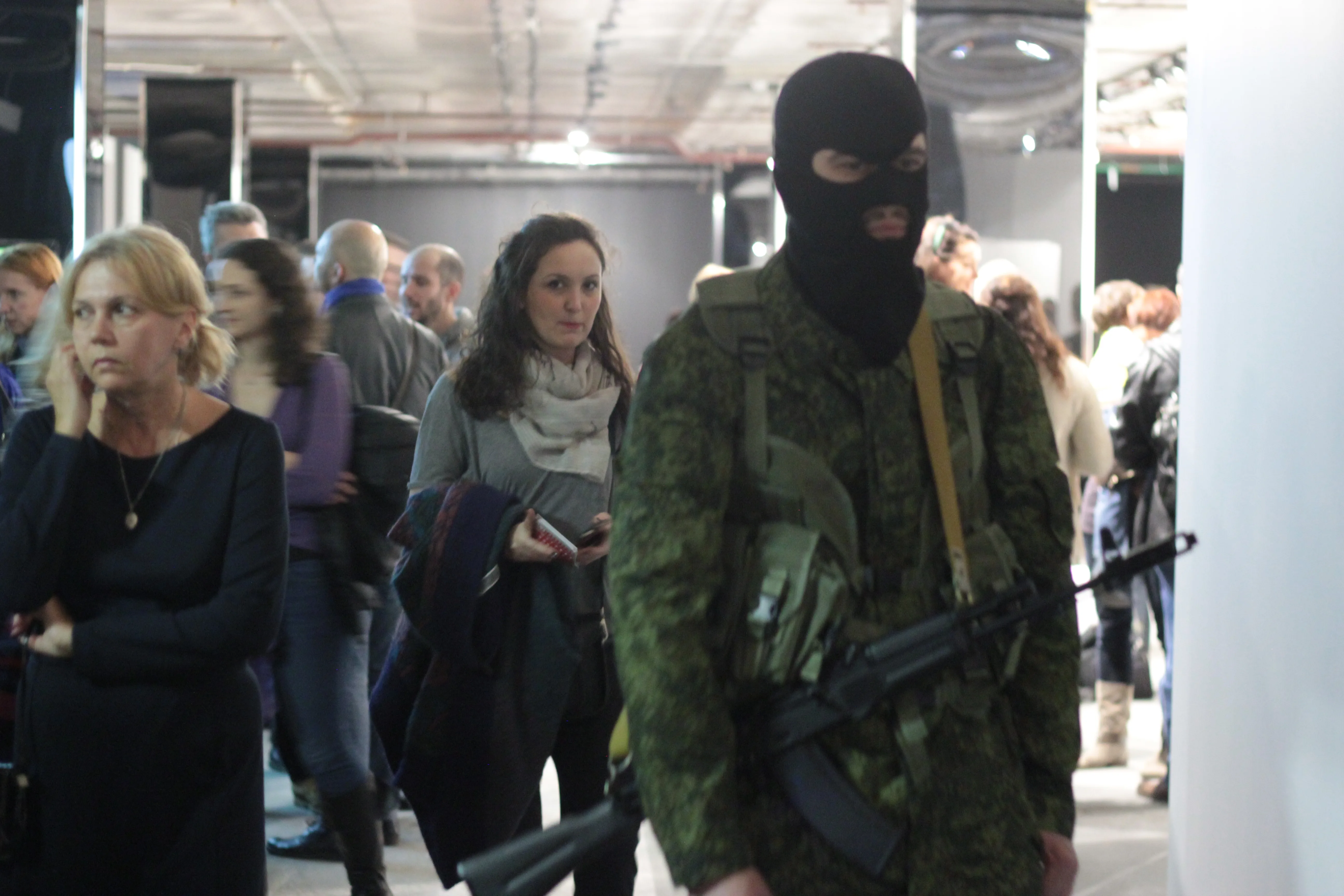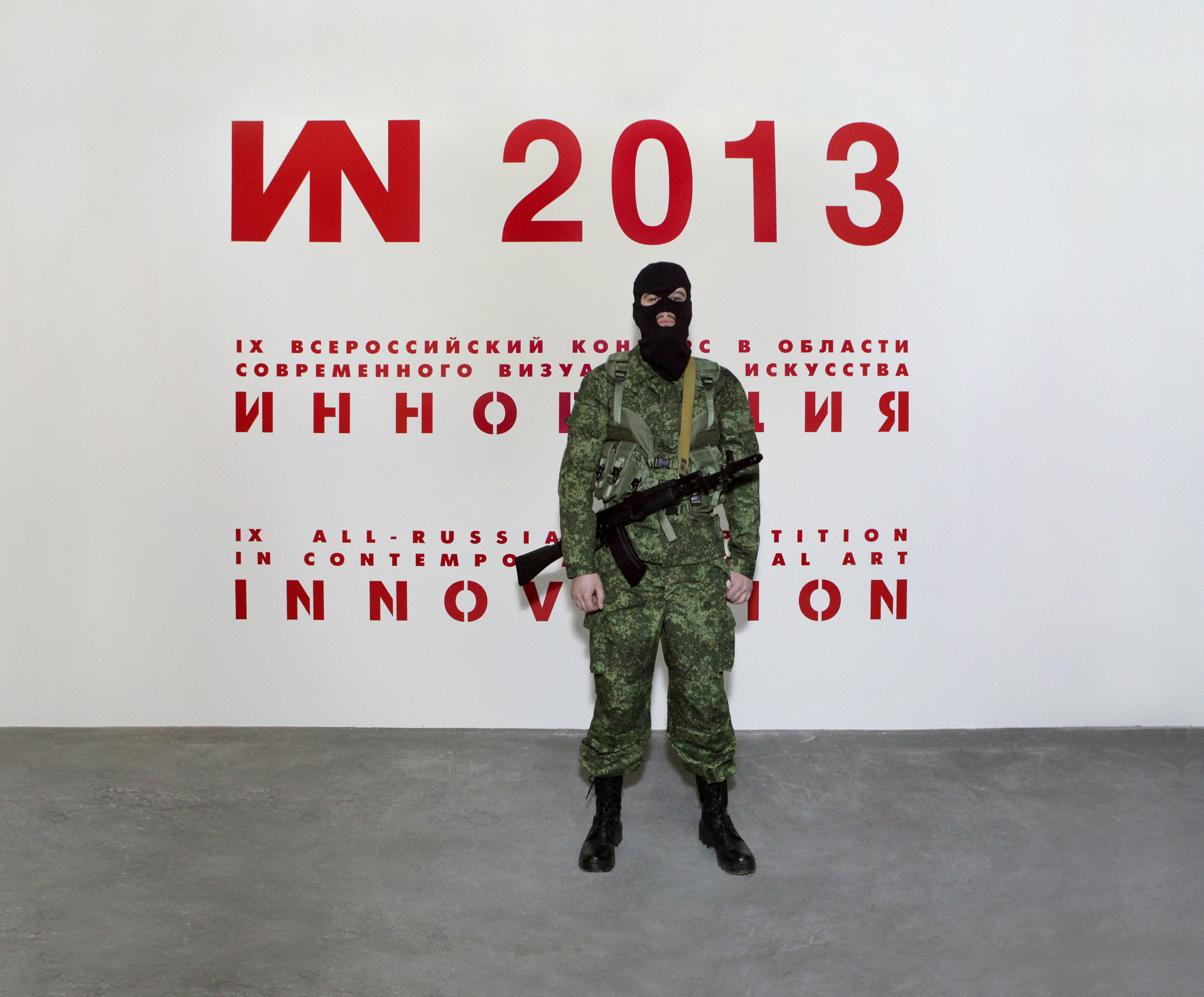 これらの作品や、無数の死体が折り重なる《身体の山》(2017)といった作品が、2014年のロシアのウクライナ侵攻の後に作られたことにも留意したい。2014年の紛争による死者は、13000人以上に昇った(国連難民高等弁務官事務所による推計)。クスキンは、2014年のロシアのウクライナ侵攻に抗議し、2014年3月25日には、ロシアの権威ある現代美術賞「イノベーション」の展覧会オープニングに、ロシア軍の軍服を着て、模型の銃を持って現れるパフォーマンス《イノベーション2014》を実施している。このパフォーマンスでクスキンは、「現在の真の〈イノベーション〉(新しい状況)は、私たちが国境で戦争を始めた国に住んでいるということであり、武器を持つ人間が町や社会の催しに現れることが、じきに普通になる」ことを示したかったと語る。