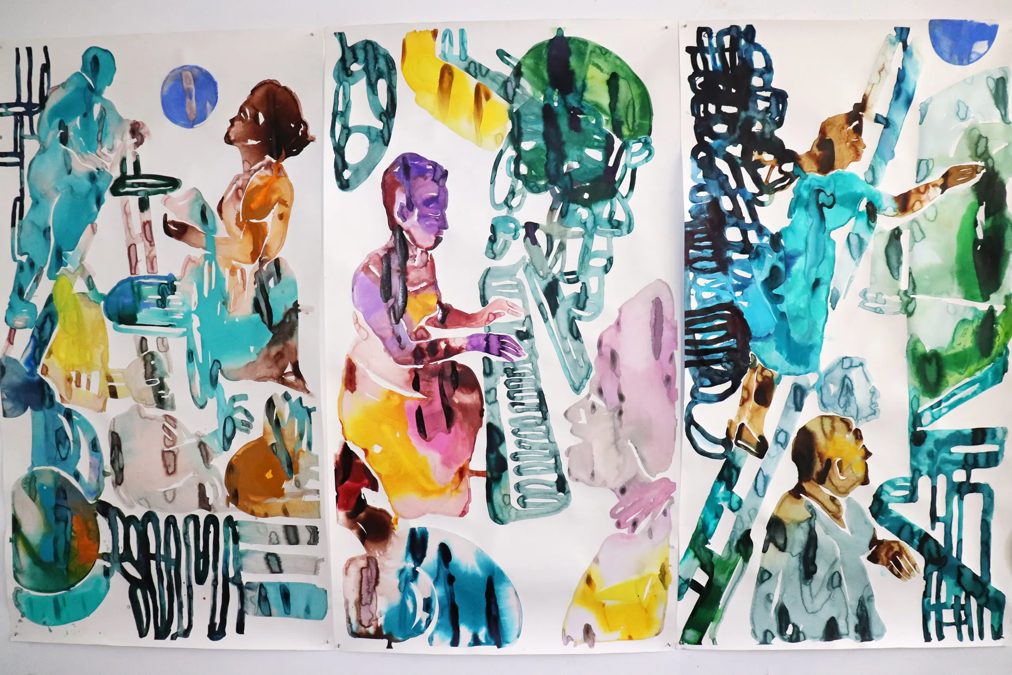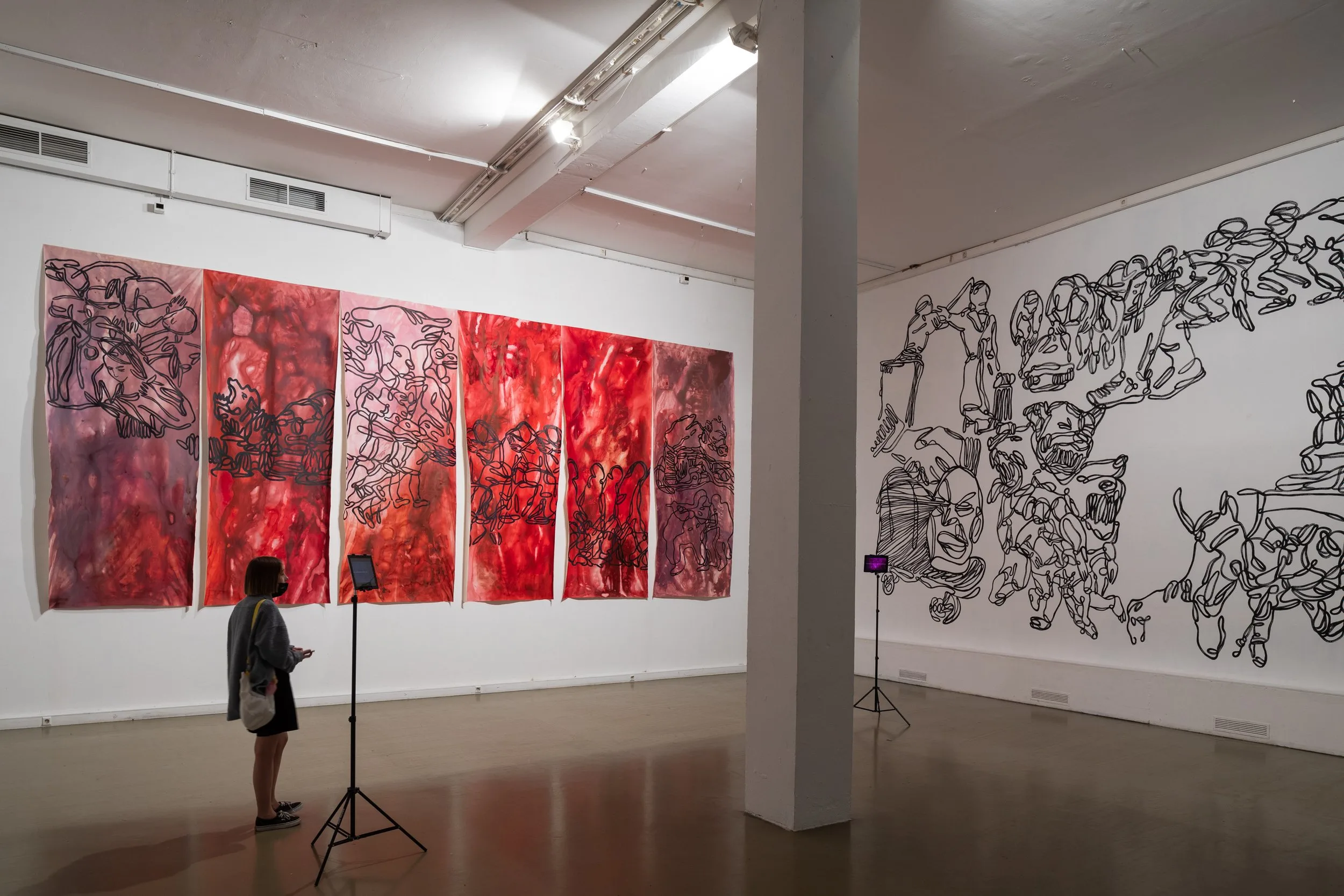 2021年の《違う時間》でも、ムロムツェワは、複数の他者に「あなたが歴史や政治、大きな世界について真剣に意識した瞬間はいつでしたか」というインタビューを行い、それを映像とドローイングで表現した。作家は、個人の記憶や体験にもとづくプライヴェートな観点からの歴史を表現することで、ともすれば固定化しがちな歴史像につねに新たな色彩をつけ加える。それは歴史の政治からの解放でもある。
