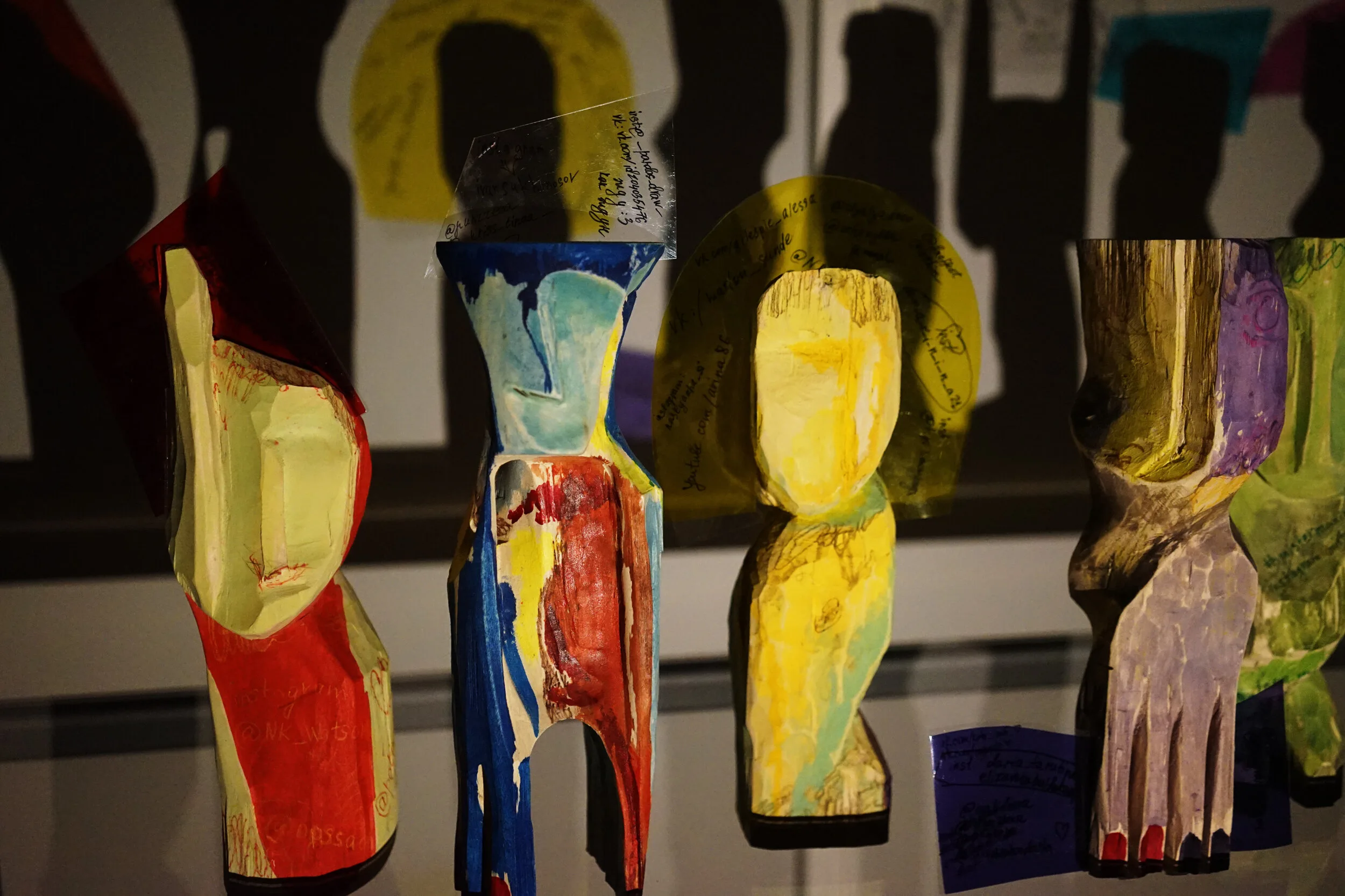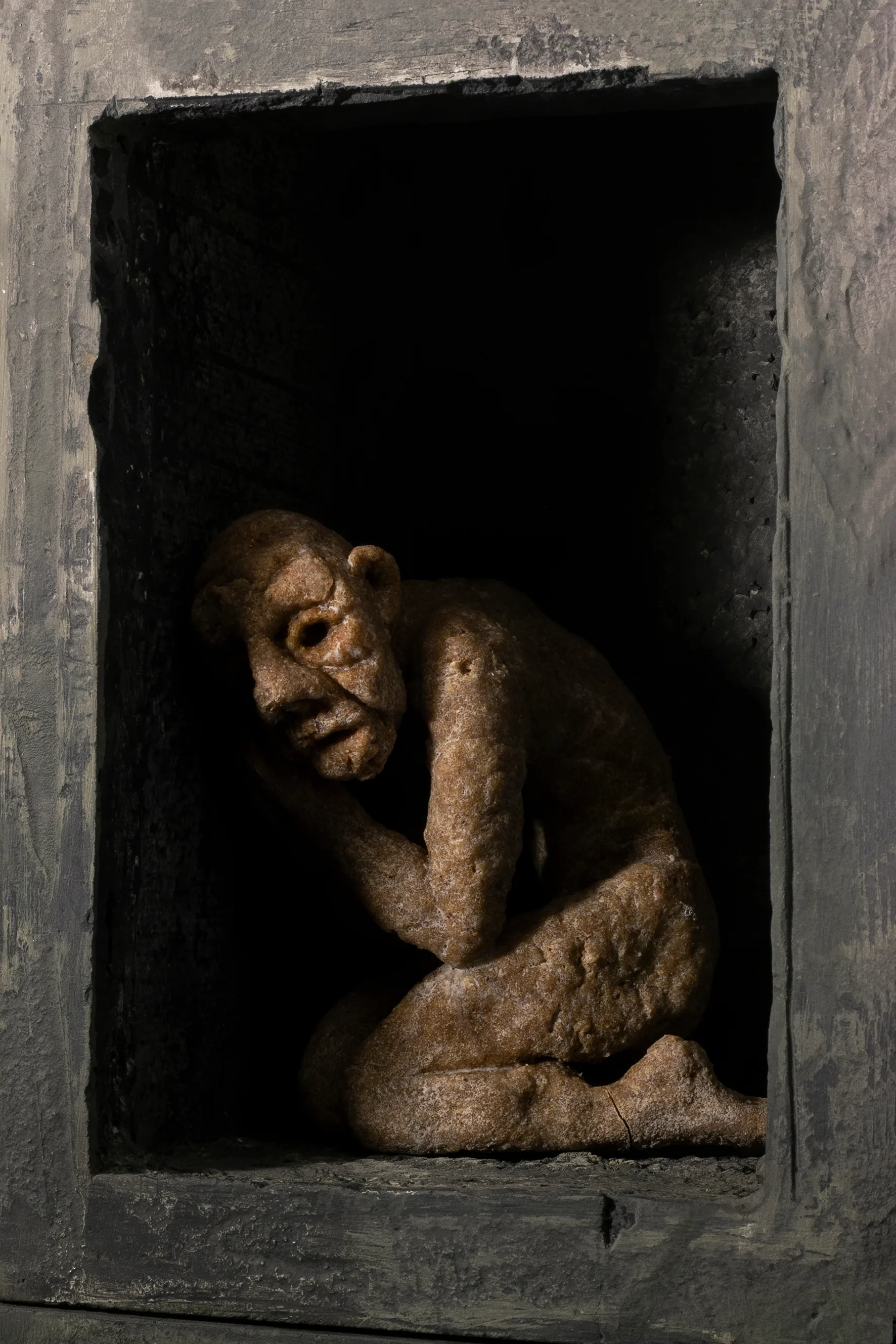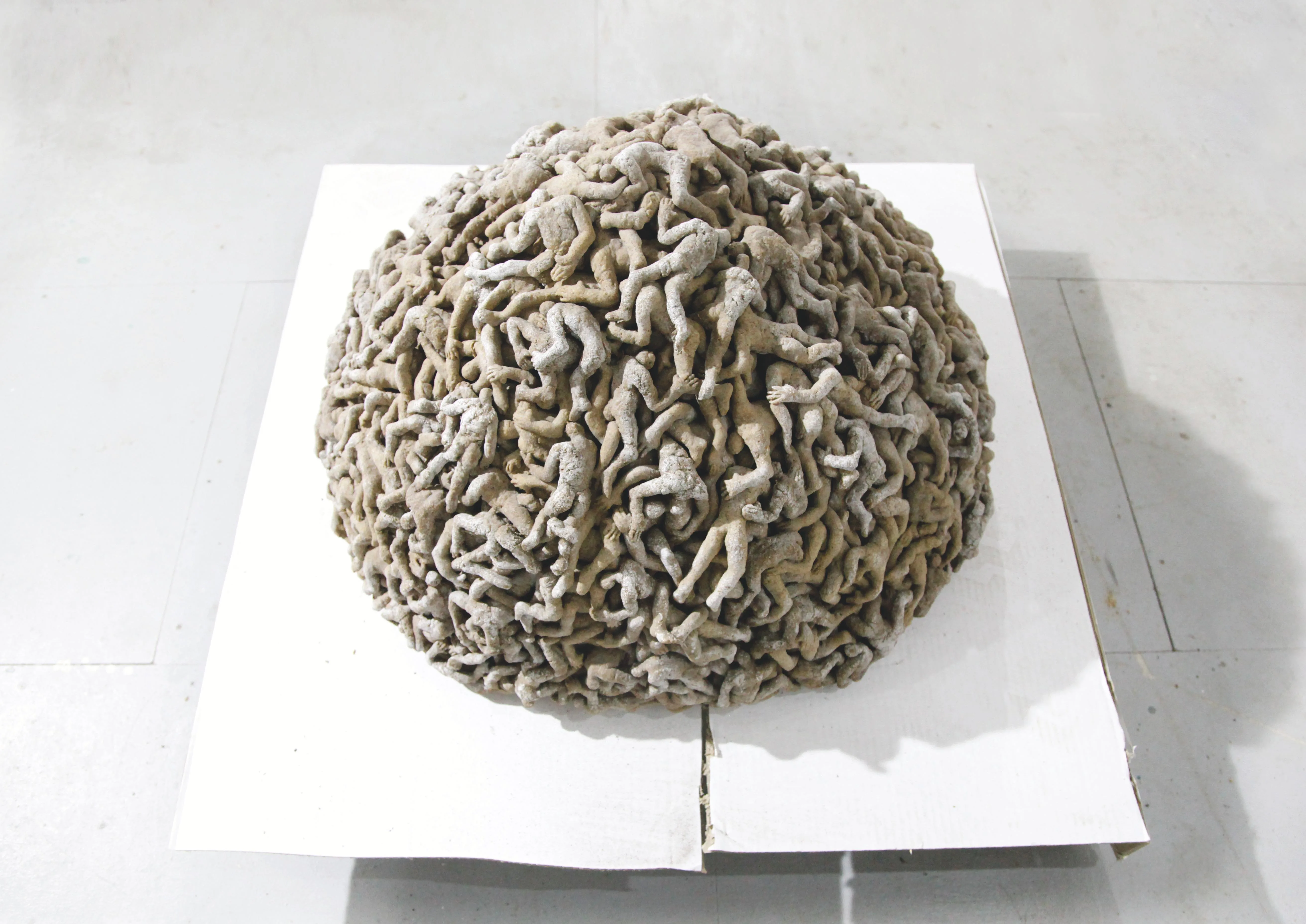 《祈る人たちと英雄たち》(2016-19)には、独房、あるいは墓のような1104の小部屋があり、どの部屋にも、パンで作られた祈る人の像が置かれている。その傍らには、やはりパンで作られ作家の血が塗られた6つの男性の頭部像がある。クスキンはこれらすべての像を3年かけて自分の手で作り上げた。「この作品は、私にとって、この国の悲劇的な歴史に対する供物であり、ある種の犠牲なのです。この国の罪のない犠牲者たちに捧げる作品です」とクスキンは語る。
