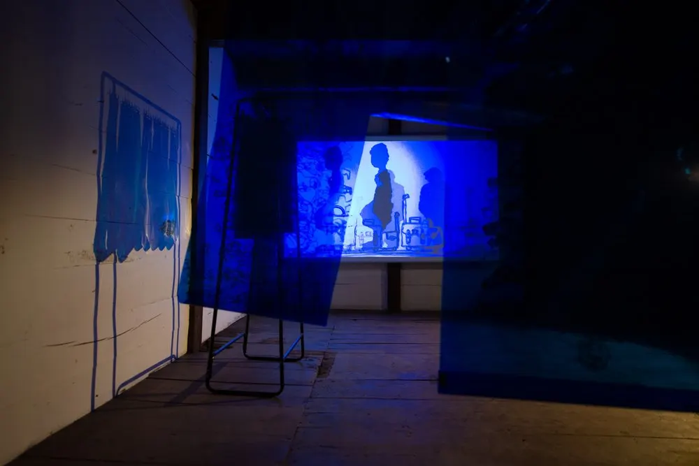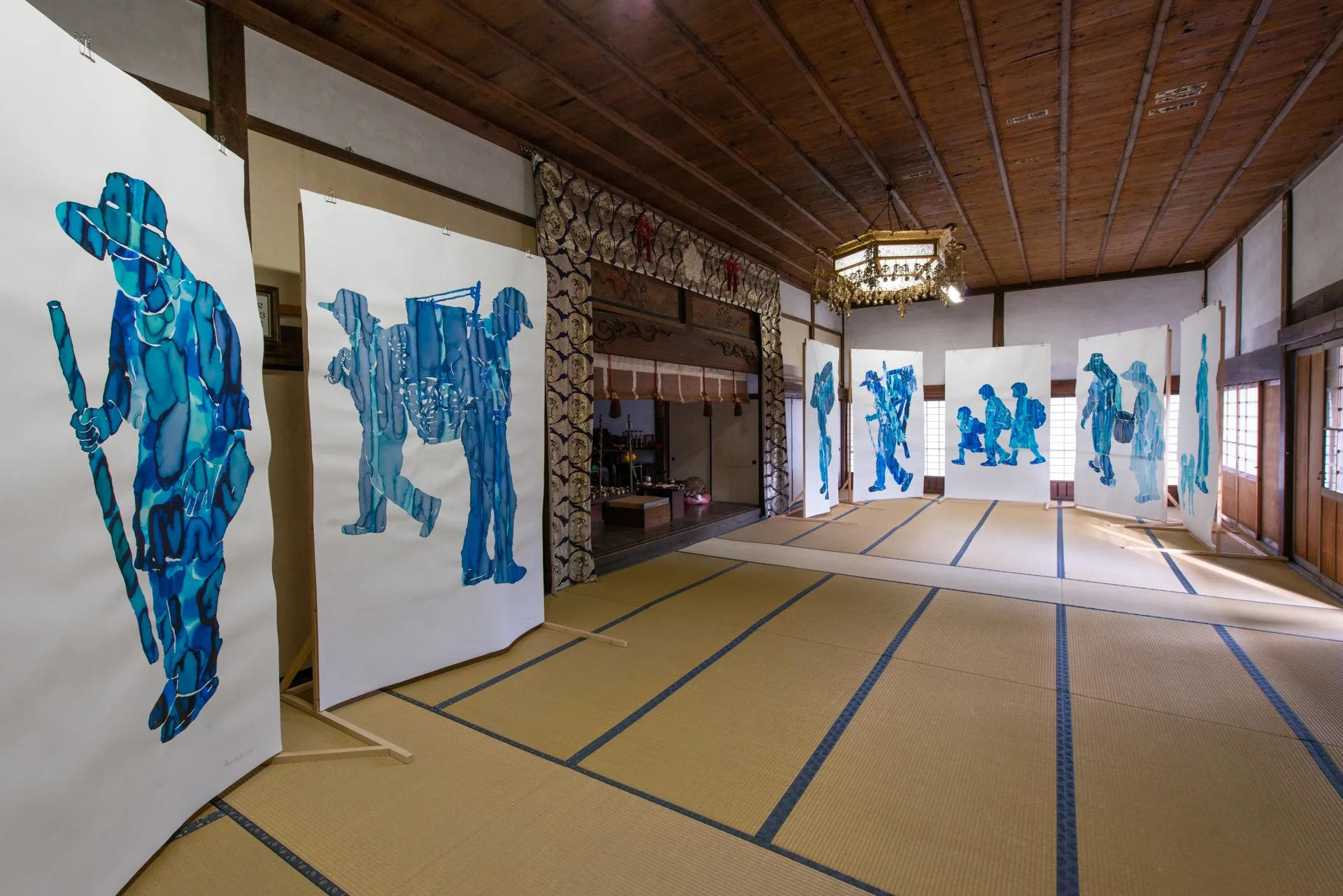 住民たちの肖像画は盛蓮寺の本堂で展示されたが、いっぽう、寺の蔵では、重い荷物や鞄を運ぶ幾世代もの人々の姿を青い透明なプラスチックのシートに描いて制作した影絵が上映された。ムロムツェワは、「この作品によって私は問いかけたい。私たちは自分の荷物を下ろして、純粋な魂で前に進むことができるのか。宗教も芸術も、それを可能にする仲介者であると思う。仏教寺院は、あなたが不要なものを下ろして、瞬間を感じ始めることのできる場所である」と語った。