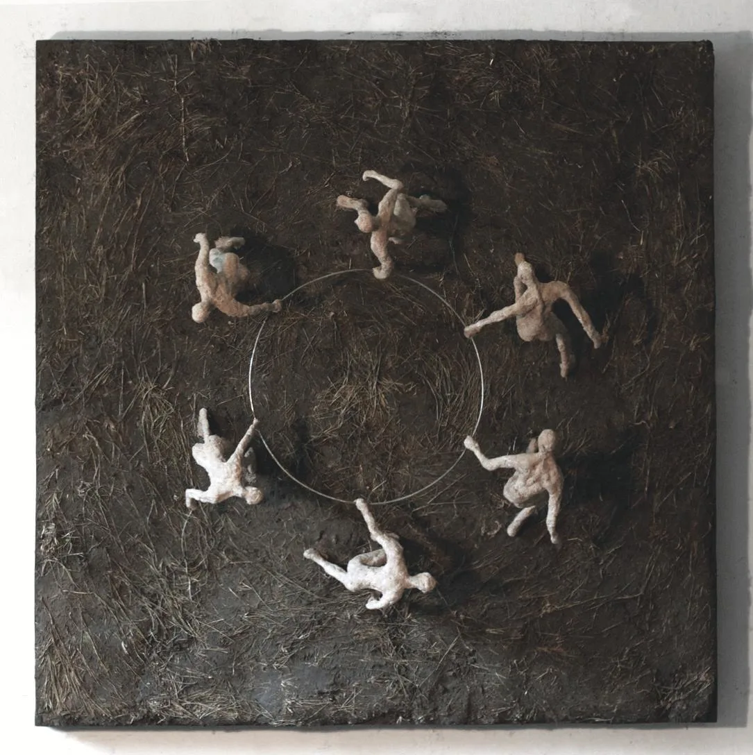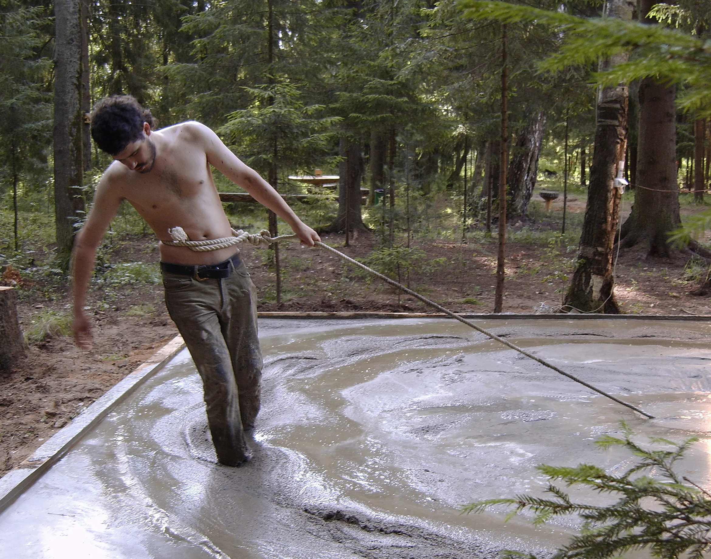 《円を描いて》(2008)は、作家が自分の胴体に太いロープを縛りつけ、固まりつつある深さ30センチのセメントの中で5時間にわたって円を描いて歩き続けたパフォーマンスである。本作は、世代が代わっても永遠のように同じことをくりかえしてきた人類の営みを象徴していると作家は述べる。人間の一生は、最初は元気で力がみなぎっていても、最後には足取りは重くなり、死を迎えるとも語っている。また、これは、ユダヤ人として生まれ、苦難の人生を送った祖母に捧げるパフォーマンスでもあるという。