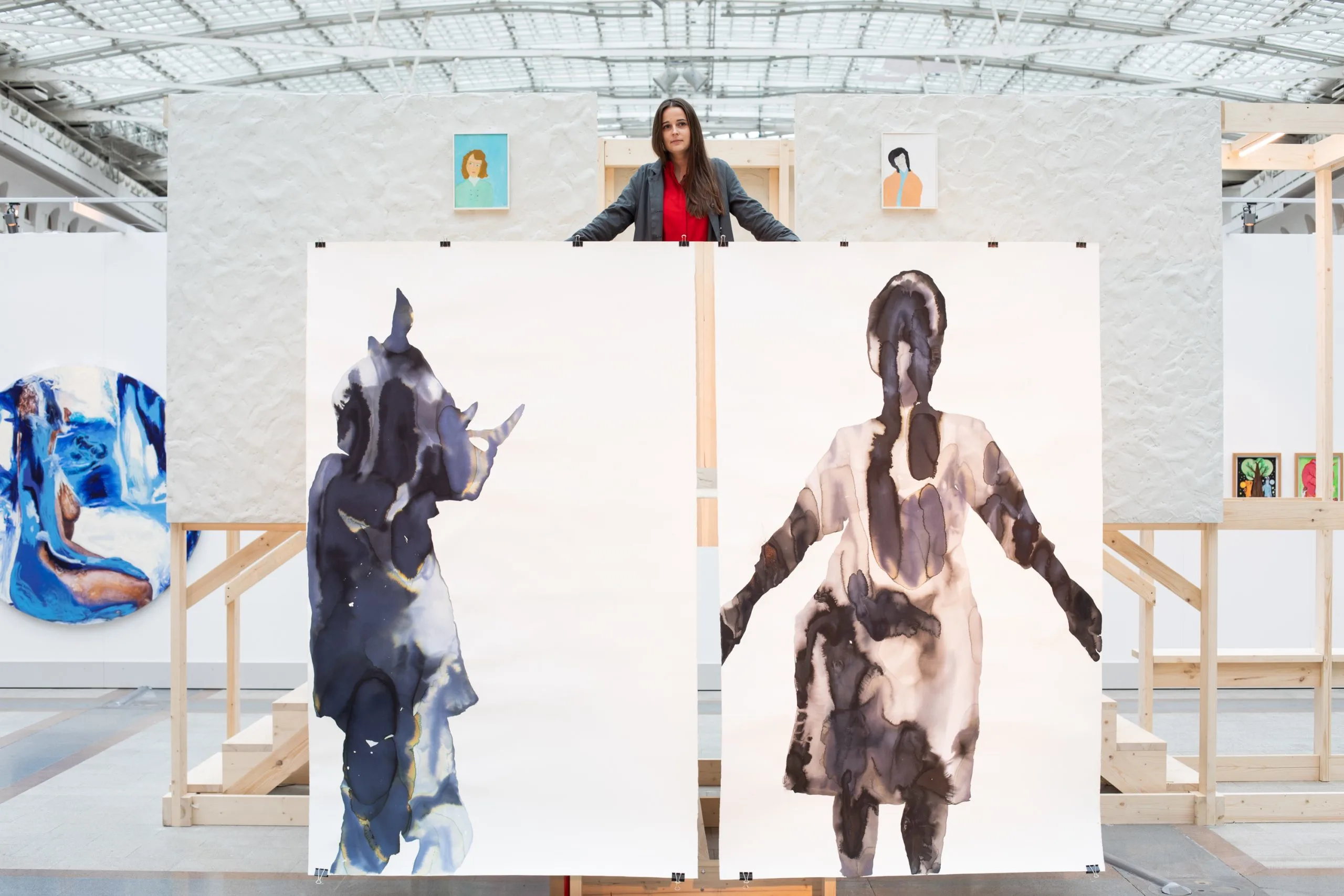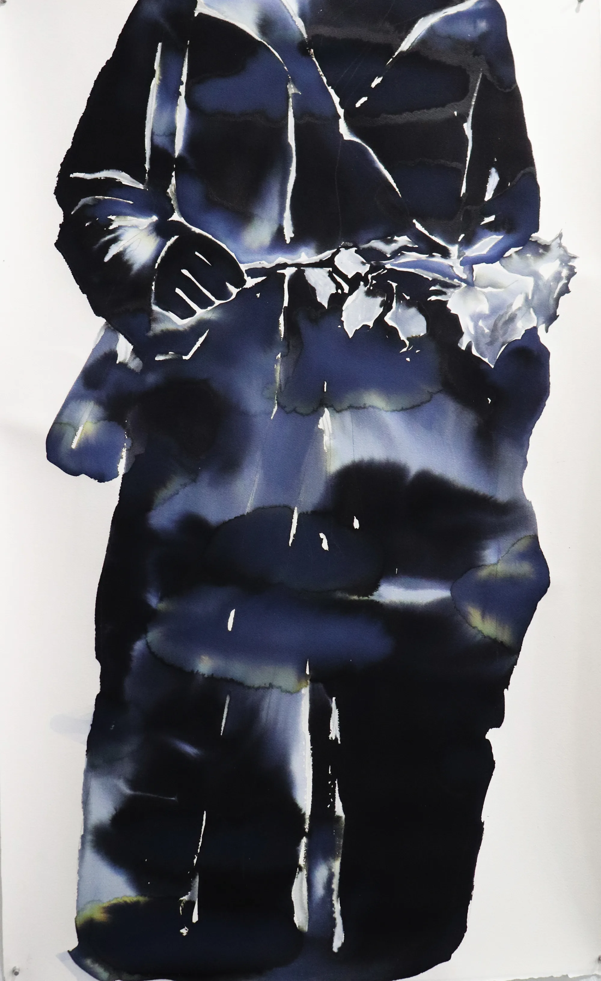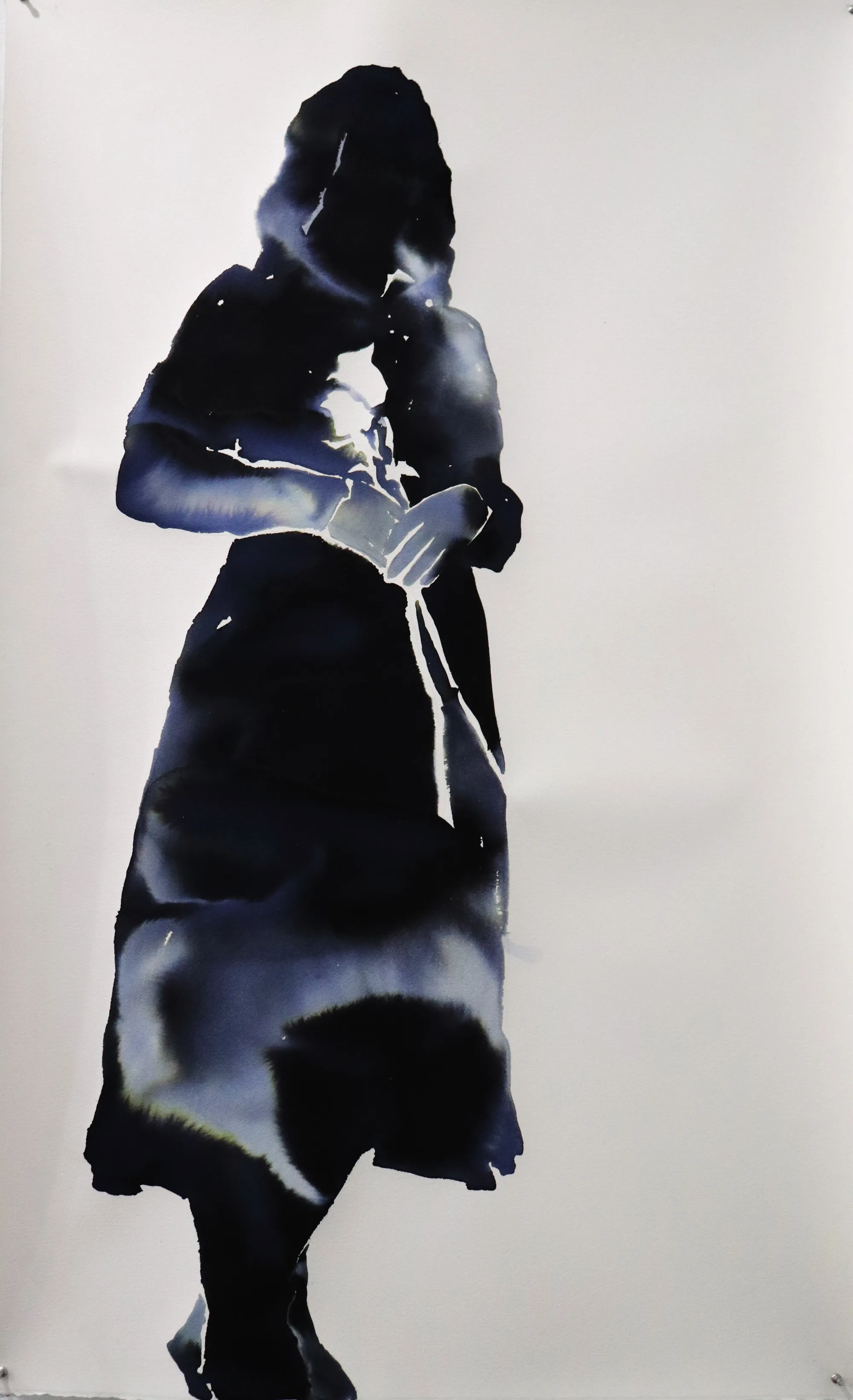 「戦争が続いているなかで、美術について話すのはとても難しいことです。戦争に反対するすべてのアーティストは、直接的な意味で、あるいは間接的な意味で、平和のためのボランティアになりました。私の知人の多くのアーティストも私自身も、難民、政治的理由で投獄され勾留されている人々を助ける組織のボランティアになりました。戦争を仕掛けた国に住みたくないという理由で、非常に多くの人々がロシアを去りました。ロシアの活動家やアーティストが作ったすぐれた組織のひとつが『フェミニズム反戦抵抗組織』であり、抵抗の新しい形式を発明し、発展させています。『戦争に反対して黒衣を着る女性たち』の抵抗運動などです。私はこの行動に強いインスピレーションをかきたてられ、黒衣を身にまとって花とプラカードを持つ女性たちの姿を描きはじめました。彼女たちはしばしば顔を見せないで写真に写っています。逮捕を避けるためです」。
