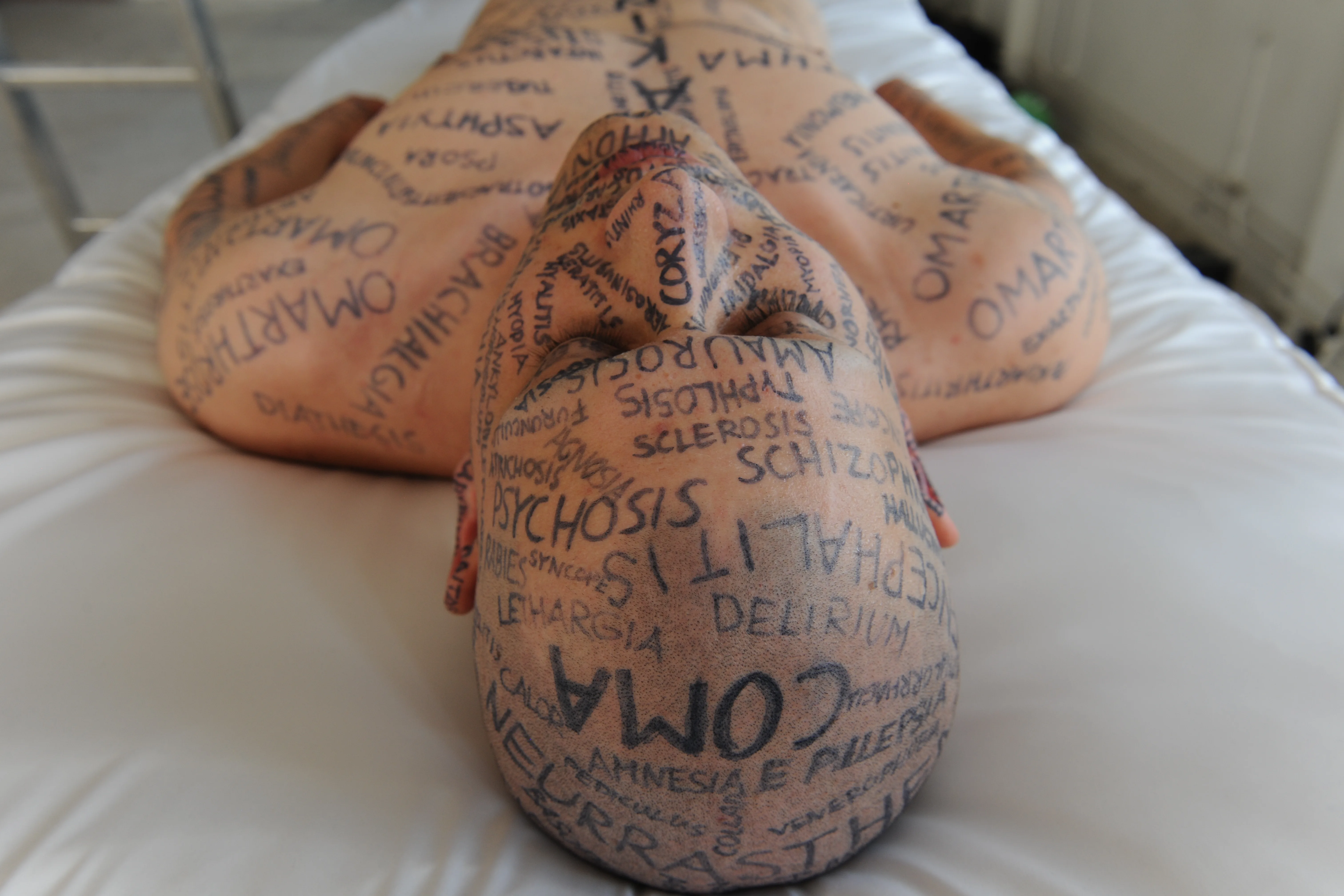 「この問いは、実存的なものでもあり(痛みとは何か? 体とは? 私とは? 私の人生とは? など)、美術史のコンクテストでとらえられるものでもある。すなわち、過去のアーティストやパフォーマーの経験をふまえて、現代においてこうしたジェスチャーとは何か?」。