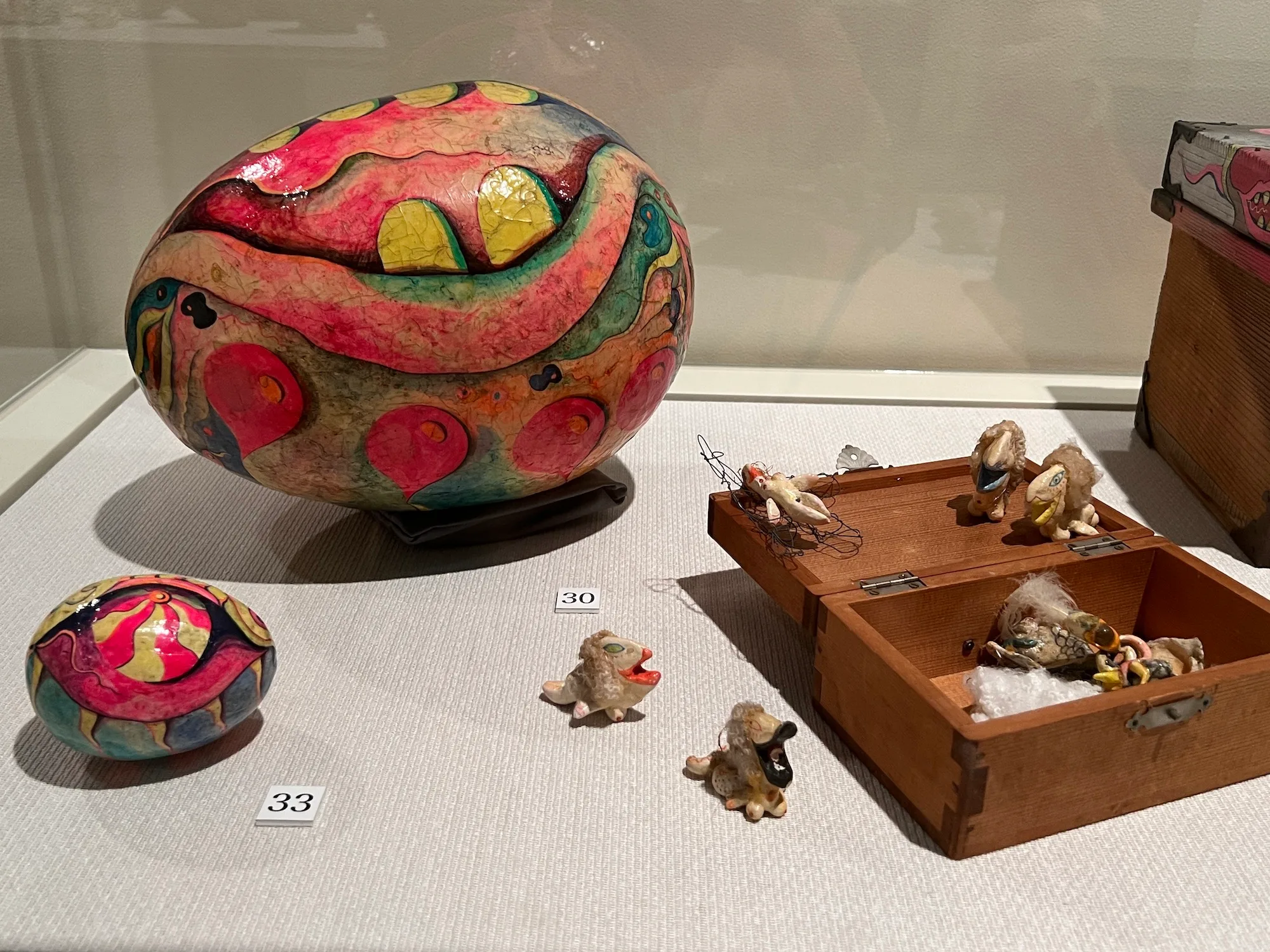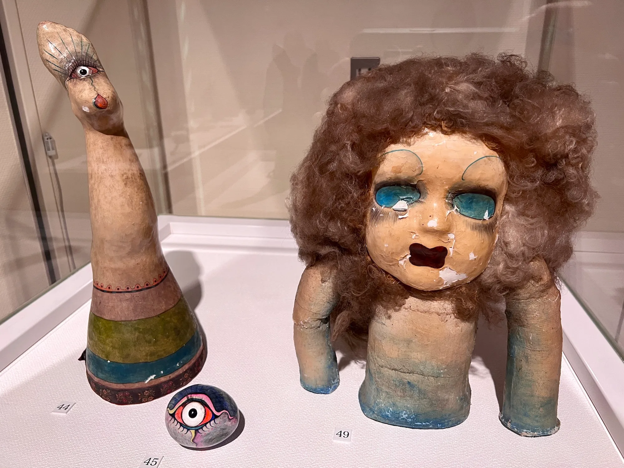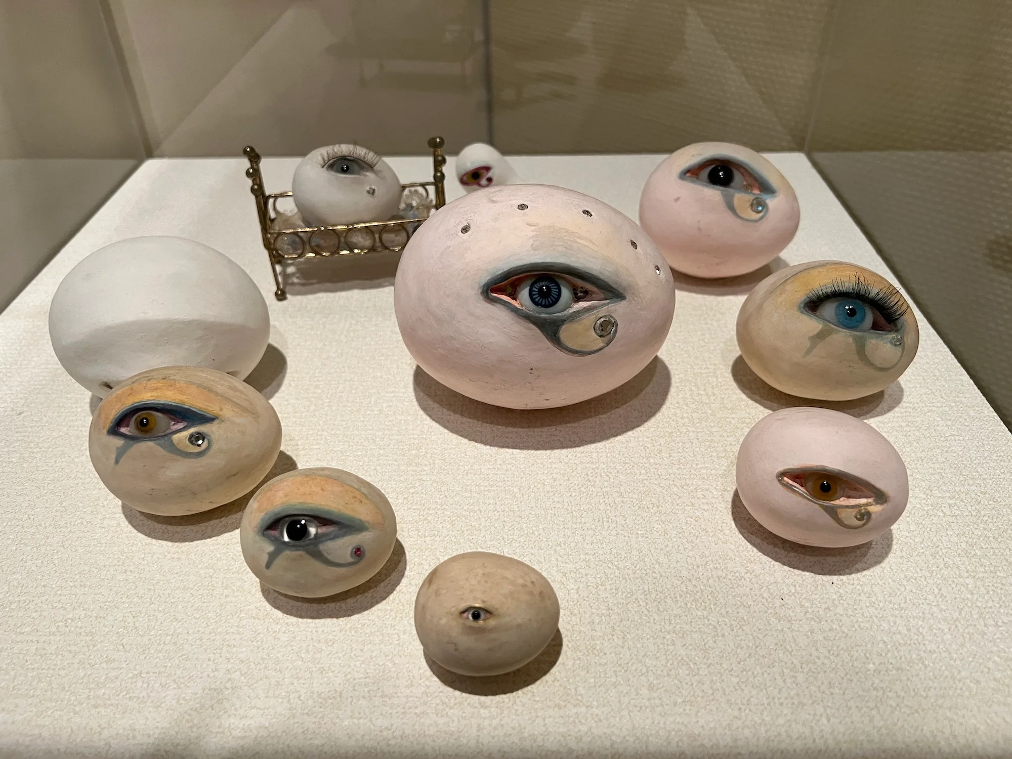 オブジェに取り付けられた「眼」。作品が合田が語った通り自分の自身・分身だとすると、これらは「見る」主体としての作家本人の姿だと考えられるかもしれない。