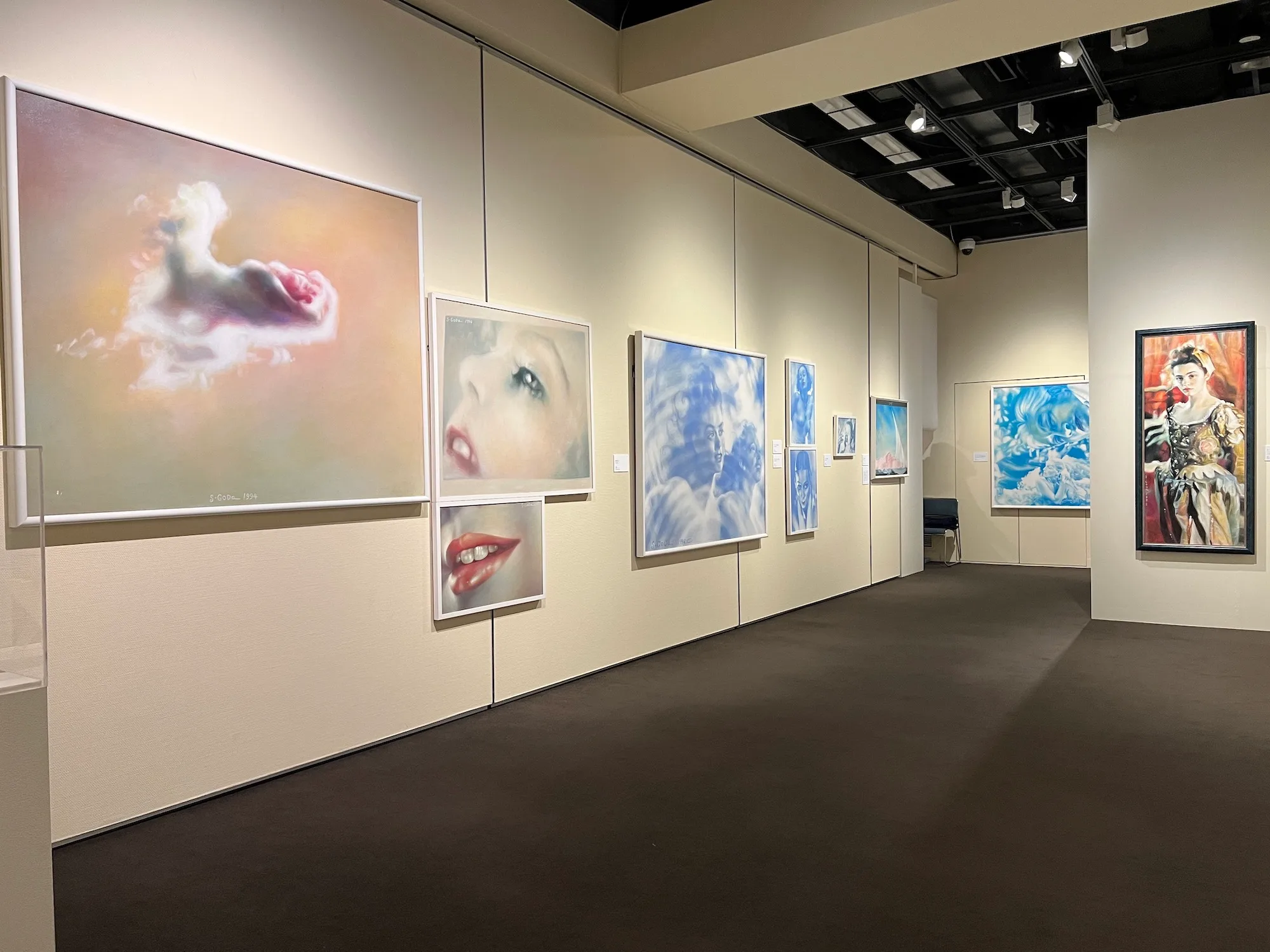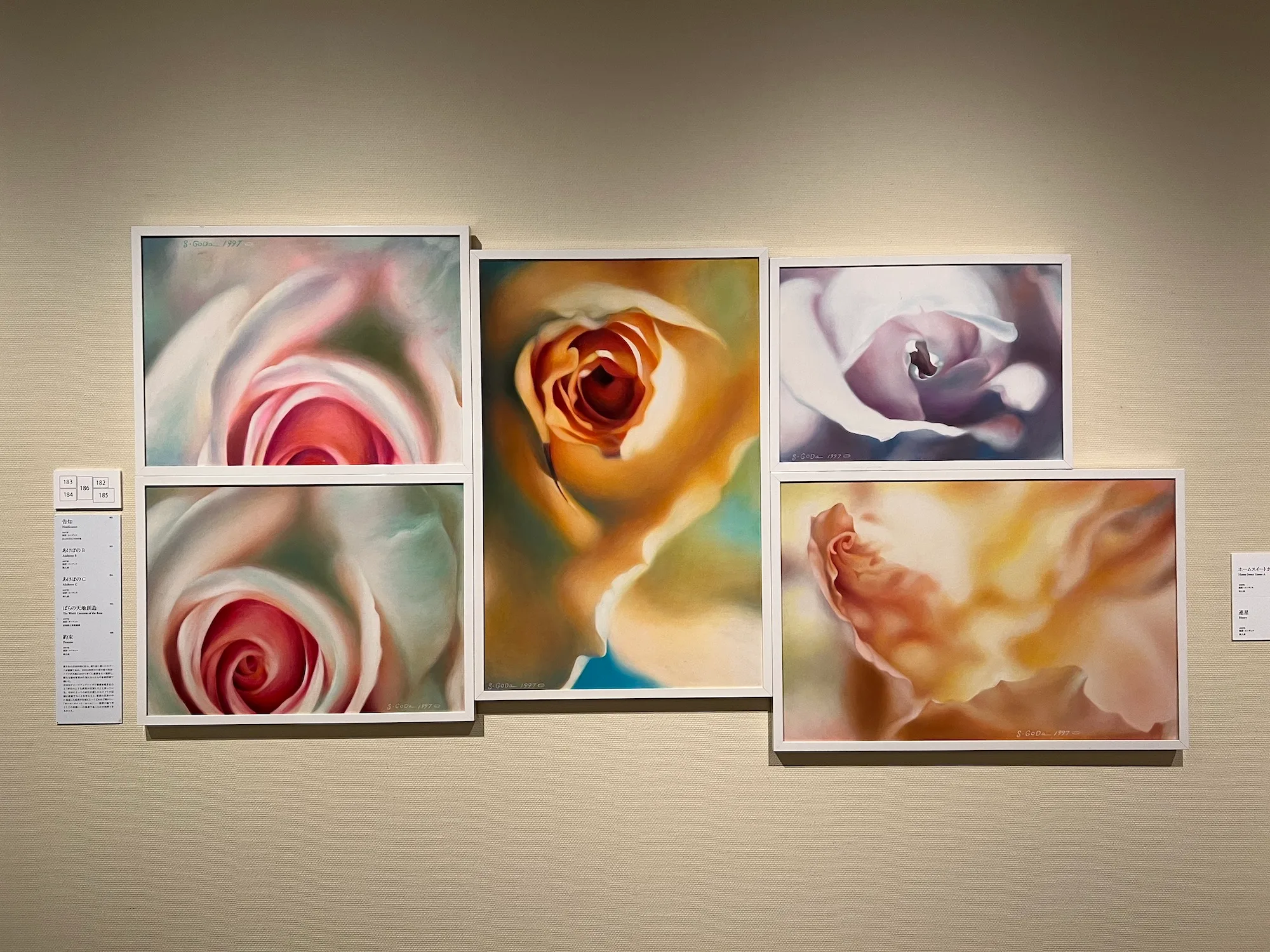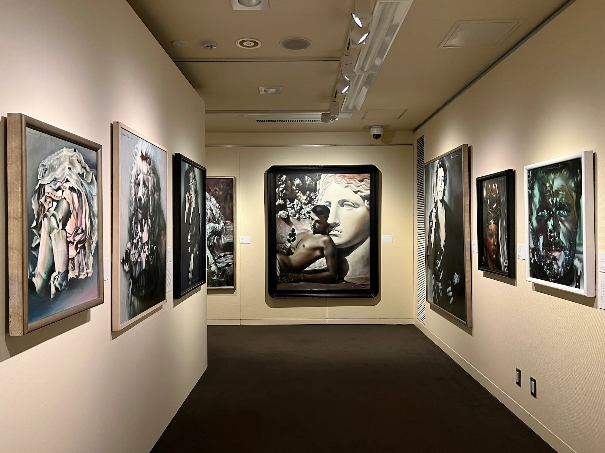 モノトーンを基調にした深みのある画面は、少しピントがずれていたり、構図が歪んでいたり、ハッとするようなモチーフの組み合わせがあったり。耽美的で退廃的、死の気配がキャンバスからこちらへと絡みついてくるかのようだ。