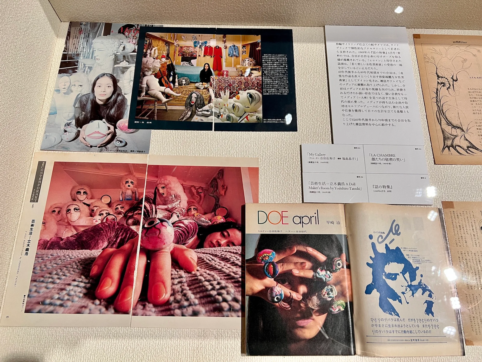 いっぽう、合田はたびたび「美人の女性美術家」として雑誌などに取り上げられており、「見られる」対象でもあった。自作のキッチュなアクセサリーを身につけた姿は、「映え」とセルフプロデュースの時代である現在を先取りするかのような、アイコニックな存在感を放っている。
