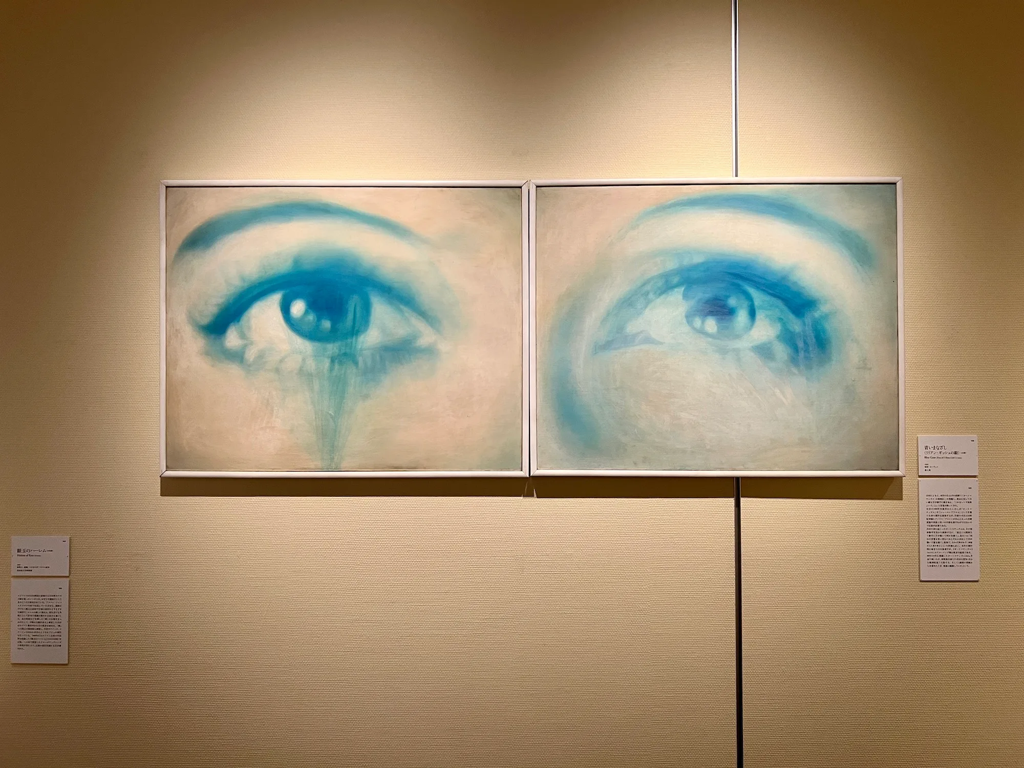 《青いまなざし(リリアン・ギッシュ)》(2点組、1988)は、オートマティズムが発動した最初の作品で、意識とは裏腹に手が勝手に絵に白い線を描き加えた。そして「これをレンズ効果という」という言葉が降ってきたという。