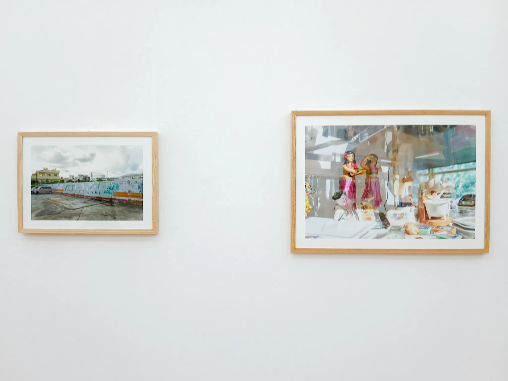 上原は、その土地や歴史に接していくアプローチとして、「写真を撮る」「後から見返す」「持ち帰ったものを再び手に取る」というプロセスを行き来する。「風景がどんなに塗り替わったとしても、声を発さなくても、そこで起こったことは消えない。取るに足らないような細部のものにも、小さな“証言”が残されている」という彼女は、街を歩きながら耳を澄ませるように目に止まったものをひたすら写し、その後再びゆっくり時間をかけて読み込み、写り込んだものを調べたりしながら写真を選び直すという作業を繰り返す。さらに台湾のように生活圏から離れた場所では、お土産品などを持ち帰り、自身の空間としての部屋や、身体の一部である手の中に置き、その手ざわりのようなものを撮影するようになった。