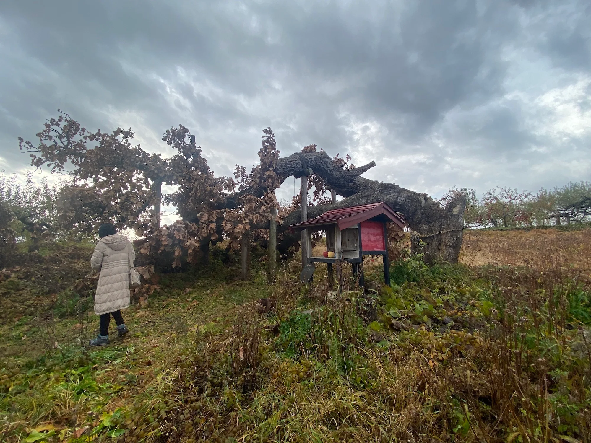 大巻が、東北での初個展に向けて青森を旅したのは昨年の11月末。初雪が降っていた。出来島海岸で約2万8000年前のものとされる埋没林、奇岩で有名な仏が浦など、津軽半島や下北半島をはじめ県内各地を回った。「青森全体がひとつの肉体のようで、そこから湧き上がる精神性を感じながら歩いた。人智を超えた力を感じながら、伝説や信仰の営みを感じる旅でもあった」と振り返る。
