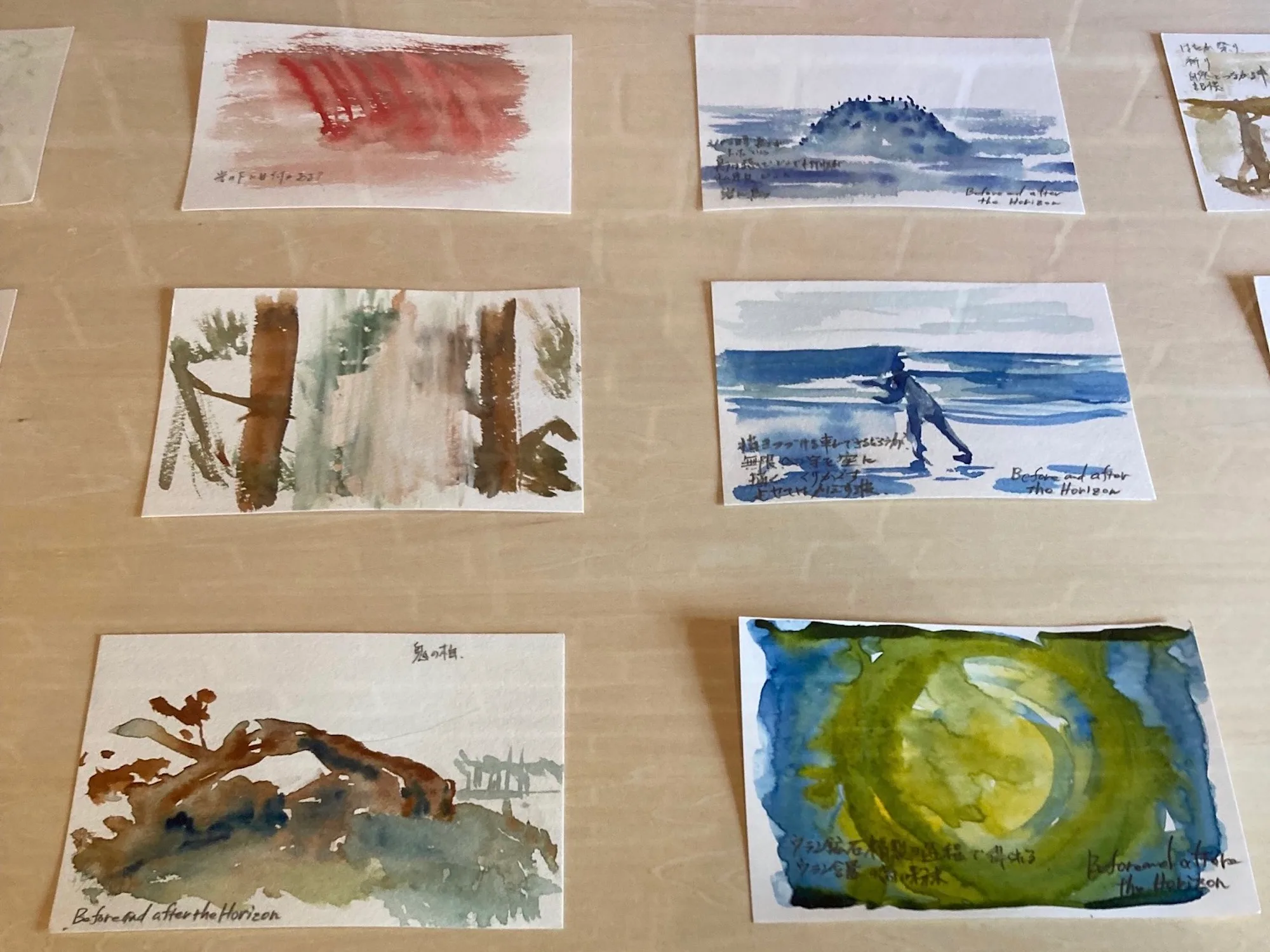 また、大巻が地元の協力者と協働し、楽曲『三月の水』の歌詞を参照しつつ、津軽弁で歌った映像作品《Before and After the Horizon》もある。リサーチする大巻の姿を見て、キュレーターの渡辺真也が「(ブラジルの作曲家)アントニオ・カルロス・ジョビンの歌みたいだね」と呟いたことに端を発し、津軽の人々の協力でできた作品だ。津軽弁が心を明るくする。「三月の水 冬終わらせる 春さなるのは 命の約束(三月の水 冬を終わらせる 春になるのは 命の約束)」。