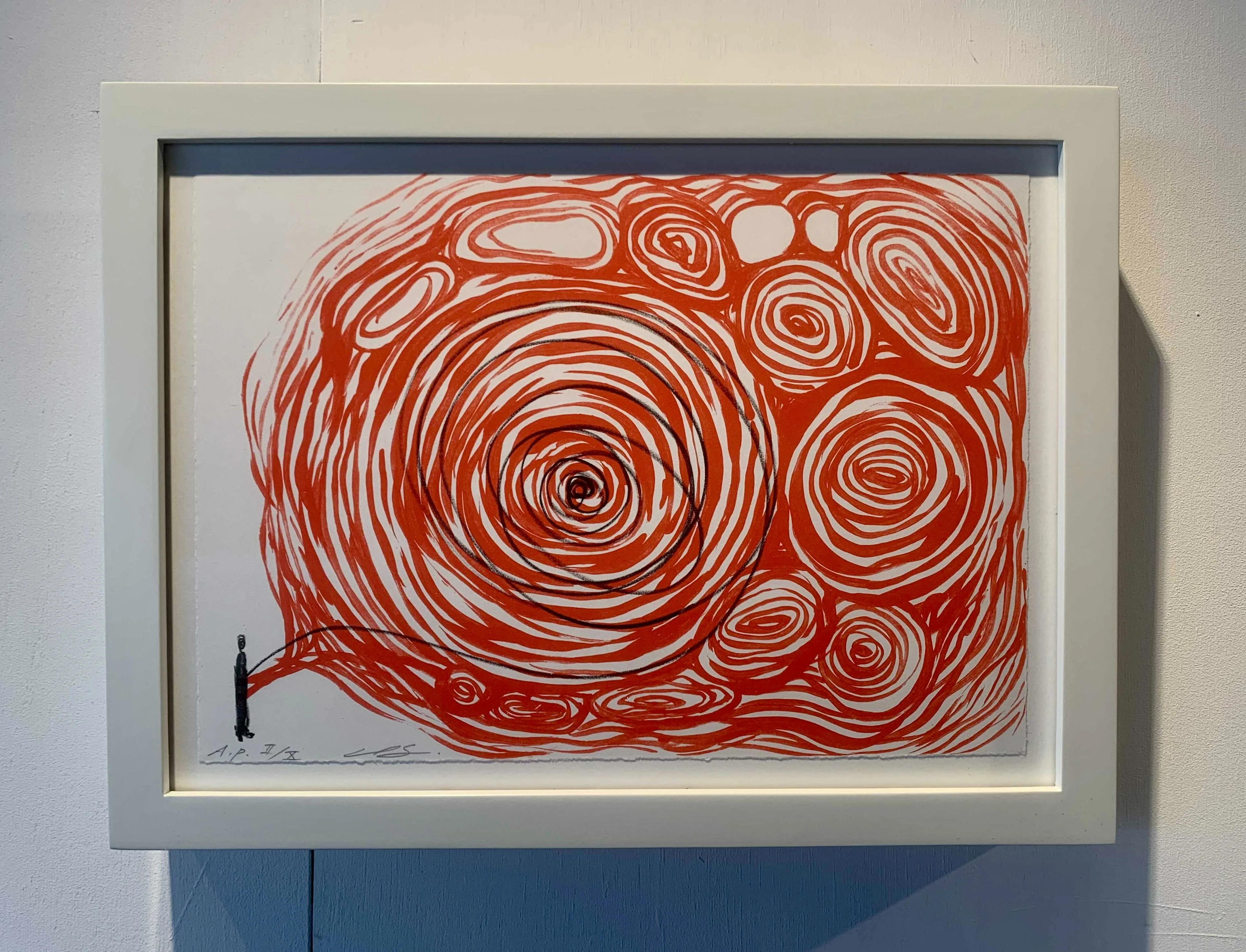 個人的な記憶と照応するかのように、3階の別室に飾られているのが計5点のドローイングとリソグラフだ。2020年から22年までのちょうどコロナ禍の時期に描かれたそれらは、人と世界、あるいは人と人のあいだの、か細くも強いつながりを感じさせるものになっている。