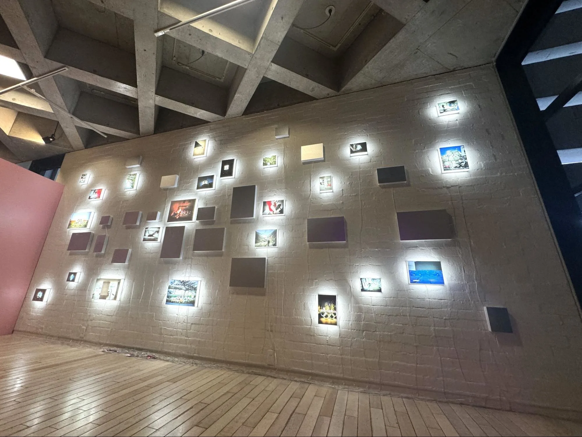 新作《unnamed road photographs》は、SIDE COREのメンバーが2017年頃から携帯電話で撮影した写真を、光の点滅によって見えたり消えたりするメディアで展示している。普段からスマートフォンやSNSを通じて、“写真を動かしながら見ていること”に着想を得た作品だという。