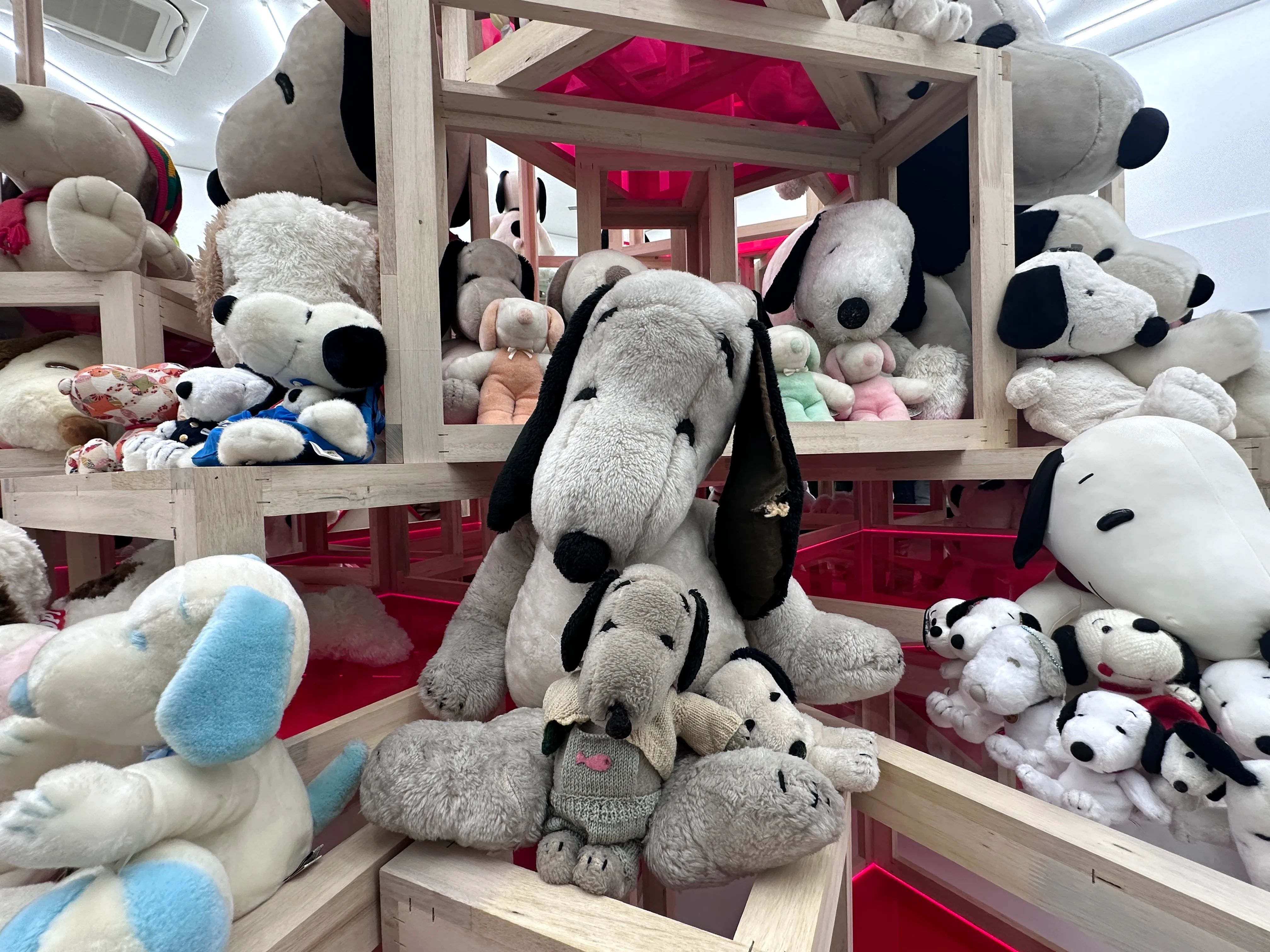 今回のリニューアルのポイントは、常設展示の大幅な拡充やミュージアムショップで販売するオリジナルグッズの充実。なかでも新たに常設展示に加わった「スヌーピー・ワンダールーム」は、「みんなでつくる、みんなのミュージアム」のコンセプトのもと、古今東西のスヌーピー・グッズに加え、ファンの人々が寄贈した思い出の品々が並ぶ濃密な空間で、ぬいぐるみ、洋服、ステーショナリーなど1000点以上が集まっている(筆者自身もかつて愛用していたスヌーピーグッズを発見!)。現代の博物館の前身となる15〜18世紀のヴンダーカンマー(驚異の部屋)から着想を得たのだそうだ。