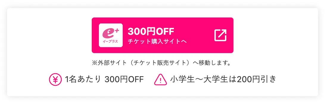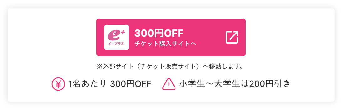 ・一般チケットが300円引き(前売り券より100円お得)、大学生〜小学生は200円引き
