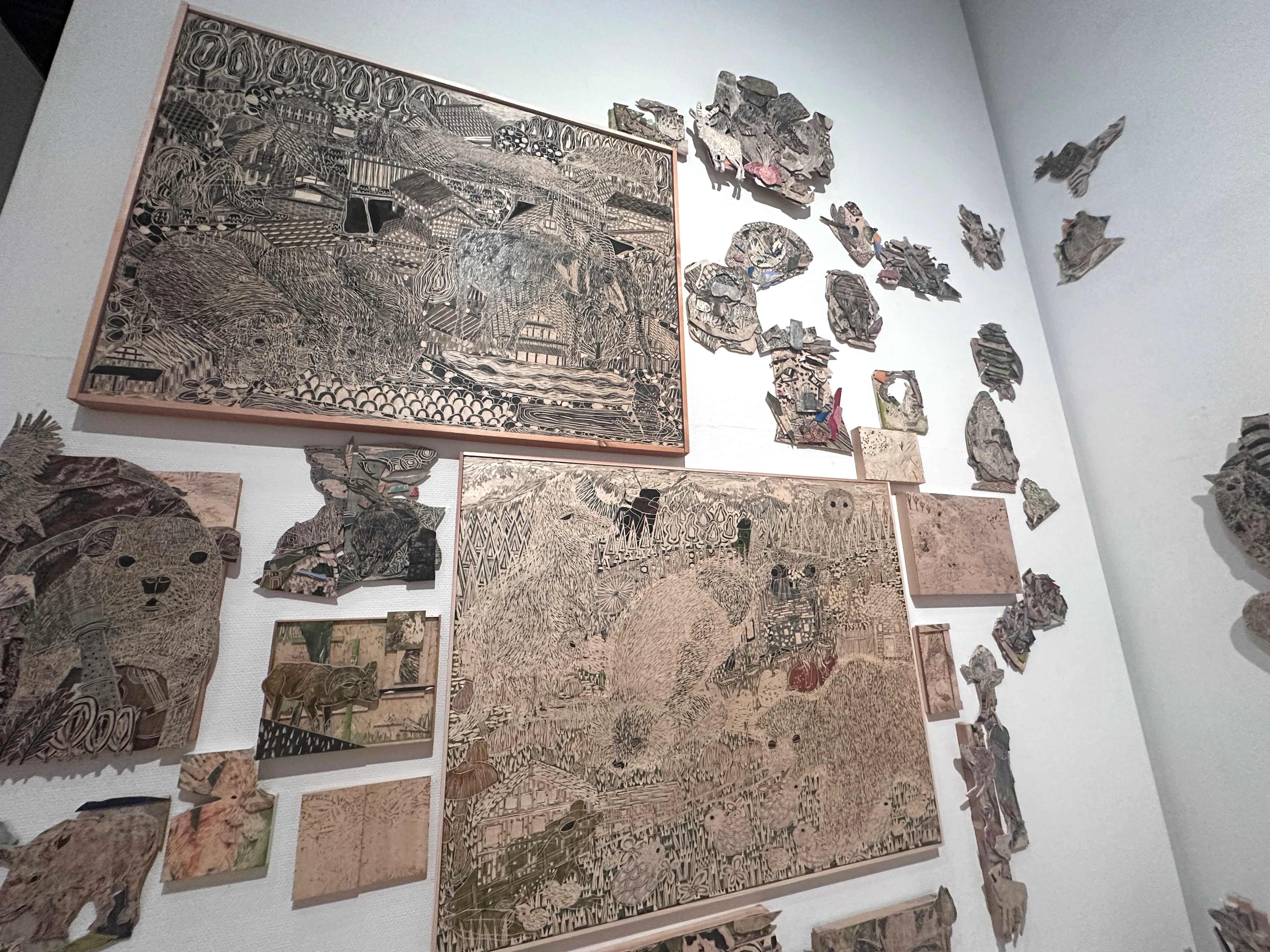 大賞のつんは1981年福岡県生まれ、成安造形大学を卒業。受賞作《今日も「あなぐまち」で生きていく》は、高さ約4.5mにおよぶ作品で、団地がモチーフ。段ボールの機構の中を覗くと無数のキャラクターが収められている様子が見える。「『あなぐまち』は自分らしく生きられなかった幼少期の自分のためのもうひとつの世界。今回認めらられたことで半生を肯定してもらったようで嬉しい。『あなぐまち』は今後もどんどん広がっていくと思う」と受賞の喜びをコメント。審査員の椹木野衣は「つんさんは人が生きている意味を、ひとりの時間に掘り下げているというのがひしひしと感じられた」と感想を語った。