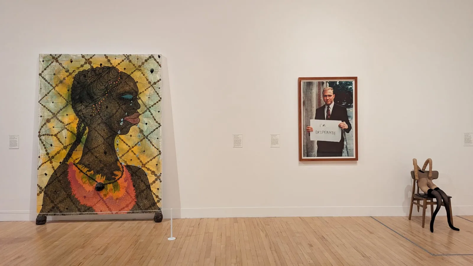 今回の大規模な展示替えによって、従来の常設展の現代美術セクションととくに異なる方向性が示されたのが展示室「No Such Thing as Society(社会なんてもんはない)」以降であろう。展示室内のキャプションは、1979年以降に英国史上初の女性首相に君臨したマーガレット・サッチャーによる政治が、イギリスという国の現代的な在り方を決定づけたとしている。国営事業の民営化や金融規制緩和といった新自由主義的な経済政策はイギリス国民の貧富の差を拡大させ、アーティスト達は変わりゆく生活と広がる格差の中に希望と挫折の両方を見出した。