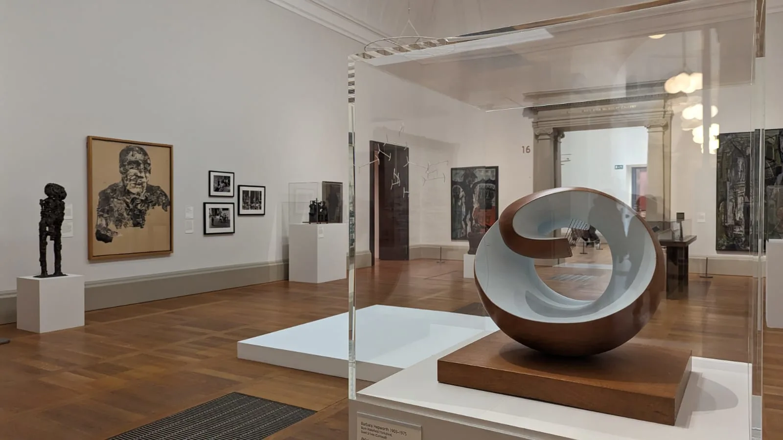 ベーコンによるトリプティックは第二次世界大戦の終戦直前に描かれたもので、ホロコーストの恐怖を描いているとも、迫りくる核戦争への危機感を表現しているともいわれている。また、フロイドはベルリンのユダヤ人家庭に生まれるもナチスの迫害から逃げるためイギリスへの亡命を余儀なくされた過去を持つ作家である。さらに、その手前にはヘンリー・ムーア《Three Points》(1939〜40)とバーバラ・ヘップワース《Pelagos》(1946)が向かい合うように展示してある。