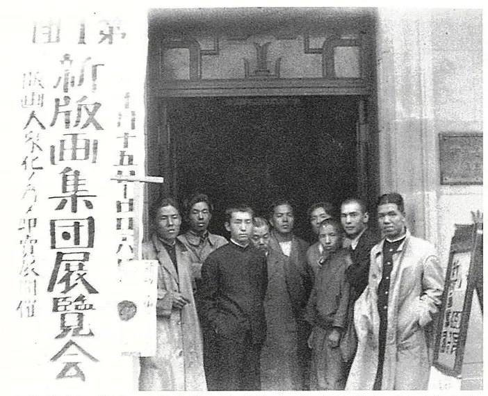 第一回展の会場は、銀座にあった川島商店ビルの前には、「集団員たち」が並んでいる記念写真が存在する。わたしはそのプリントそのものを手にしたことがない。同じく町田市立国際版画美術館で1993年に開催された「小野忠重木版画:激動の昭和を版画とともに」のカタログに掲載されている貴重な画像である。入口の左手前には前述の看板よりもはるかに大きな縦4mほどの看板を置かれ、その右下には、前述した藤牧義夫による大きなほうのポスターが(おそらく鋲で)留められている。