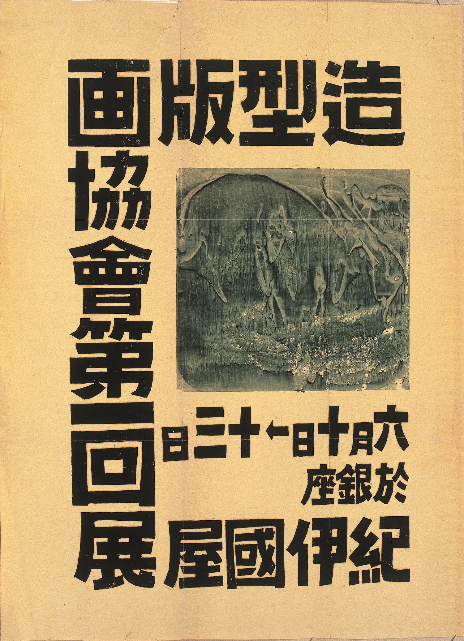 会場の冒頭には出品番号1の《SHINHANGA創刊号ポスター》(挿図)が額装され掲げられていた。集団結成時に機関誌の版画誌『新版画』の刊行も決定されていたのである。