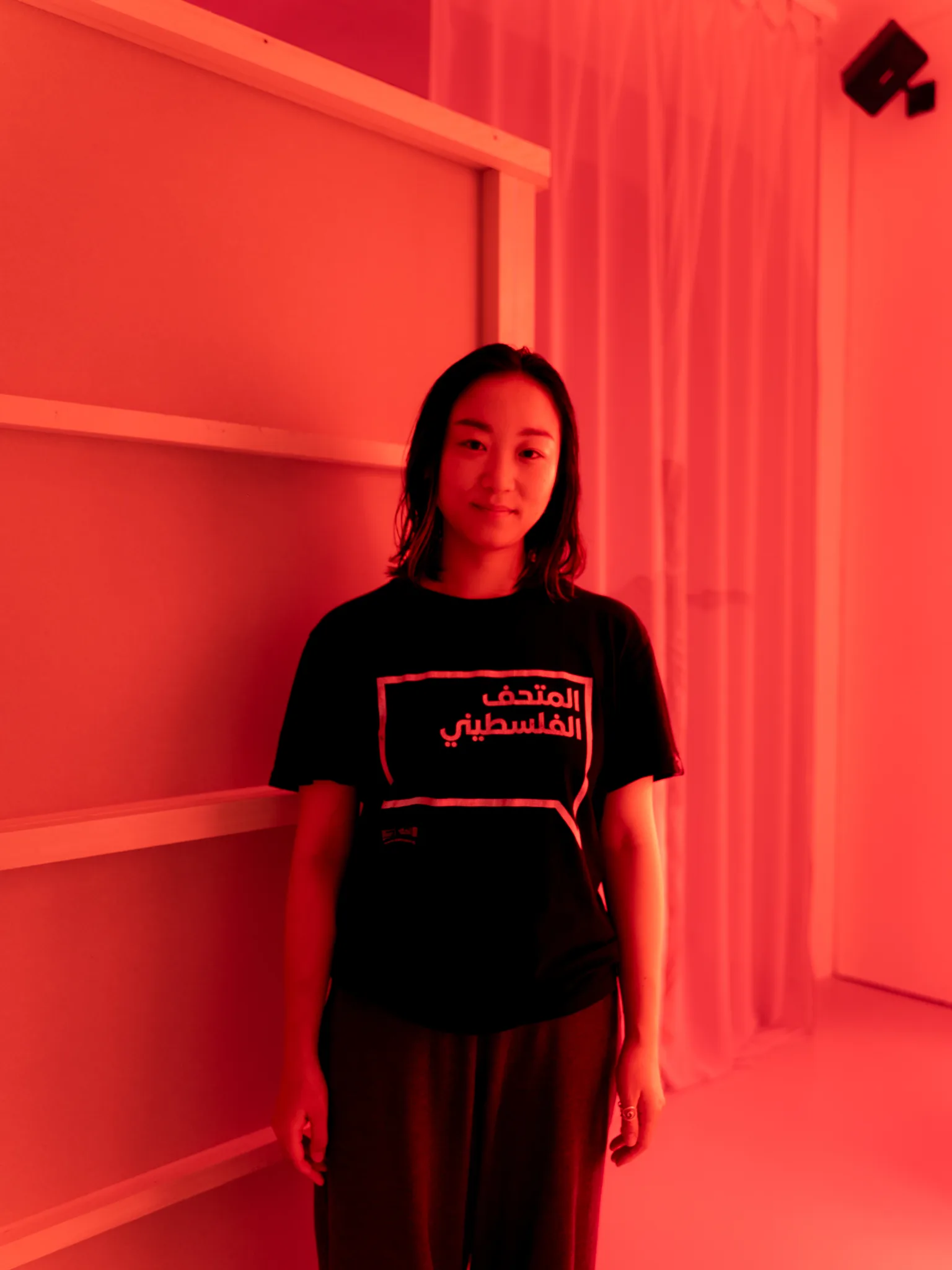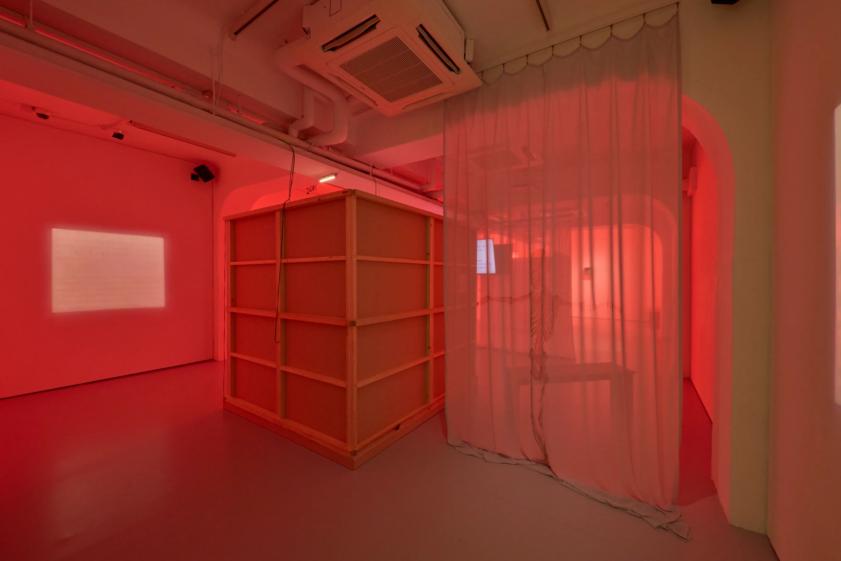 展示空間は、非常灯に合わせて人工的に作られた緑色の光から始まり、展示室を進むにつれて窓から注ぐ赤色の光へと変化する。赤色は天気や時間帯により光の加減が変わり、人の意思によってコントロールすることはできない。