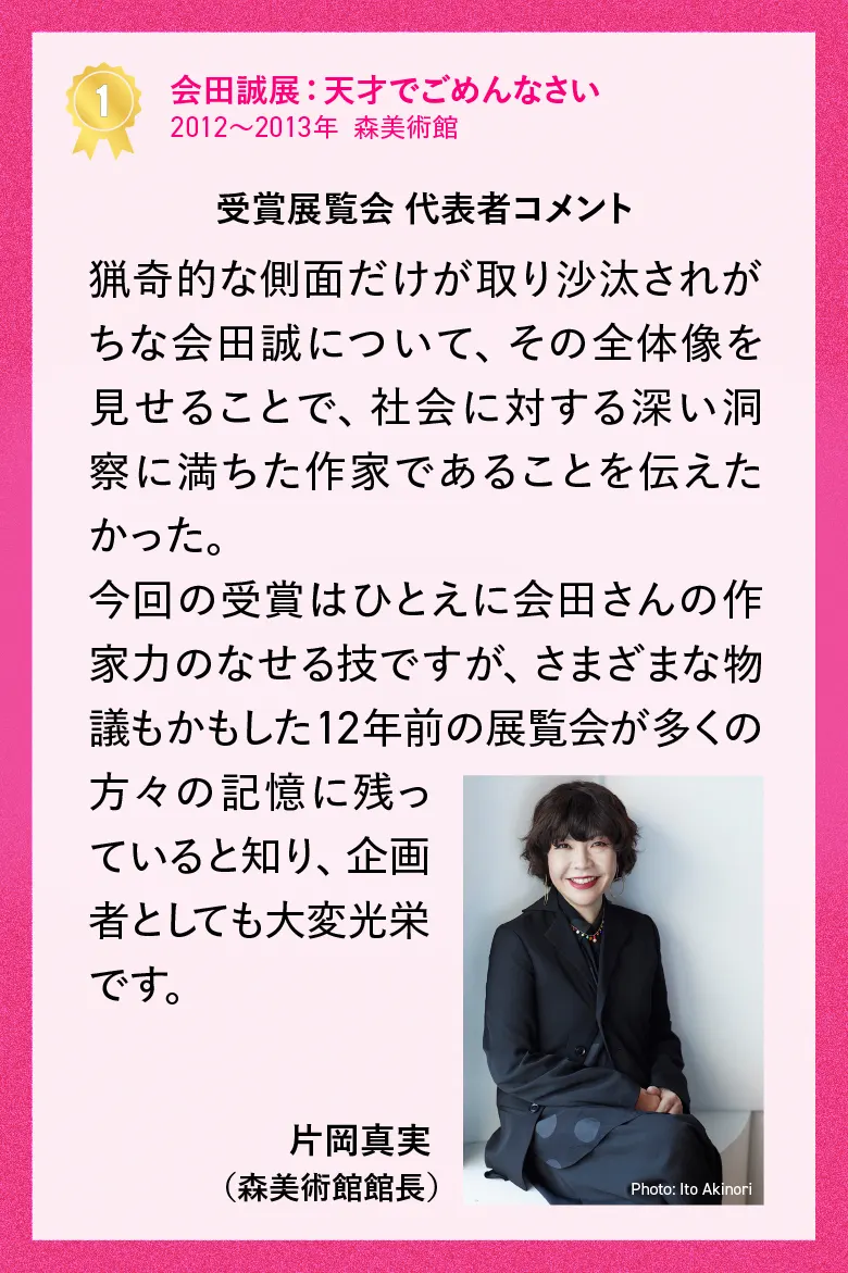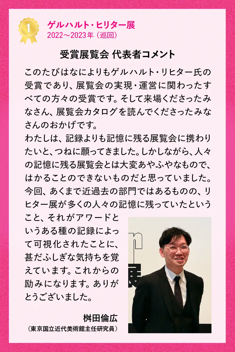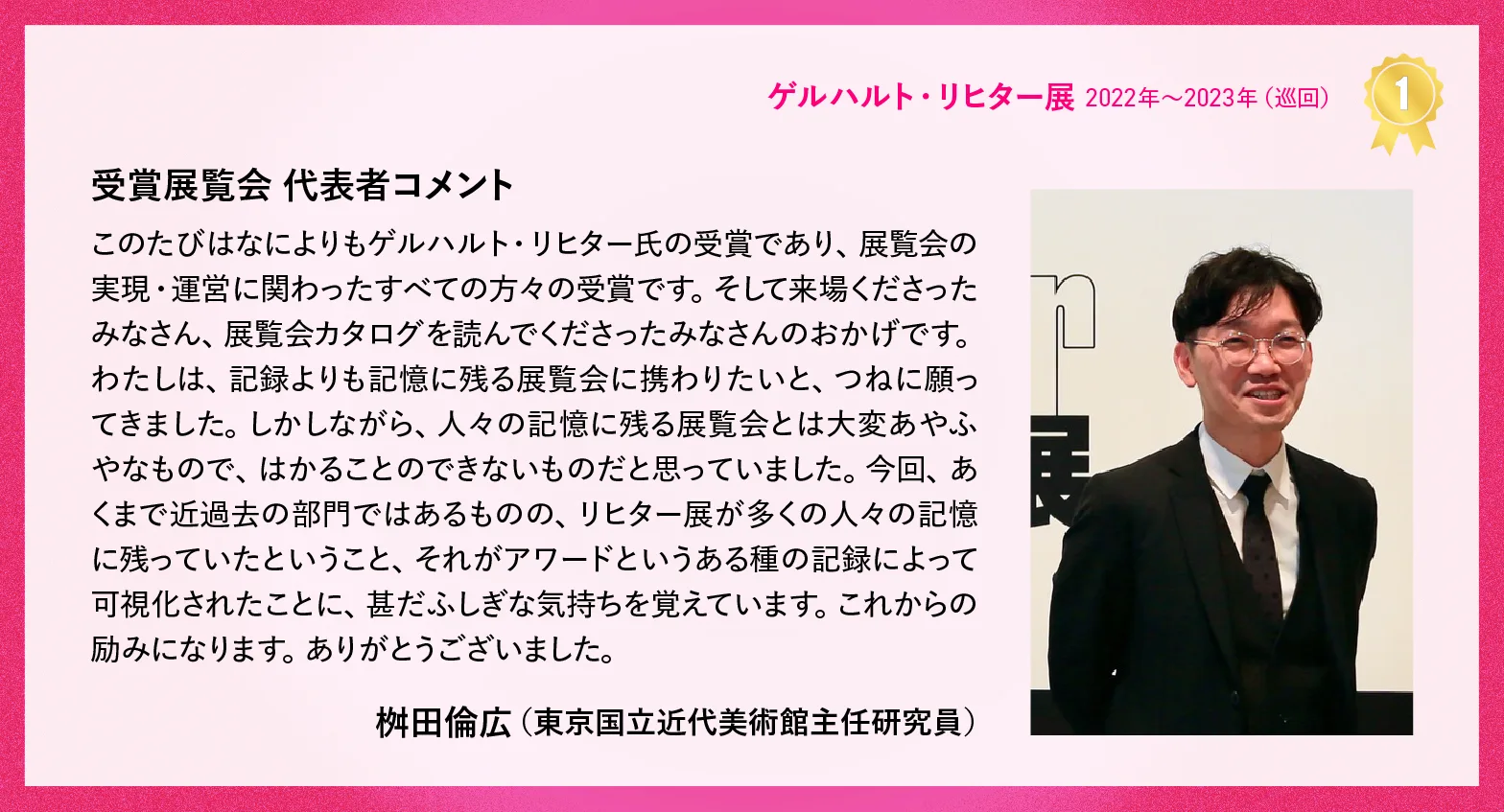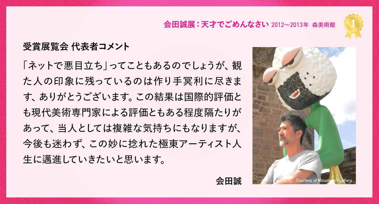 本アワードは、TABが創立した2004年から今年6月までの約20年間に開幕した展覧会から、ユーザー・読者の皆さんにとっての”ベスト展覧会”を投票で募り、表彰するもの。