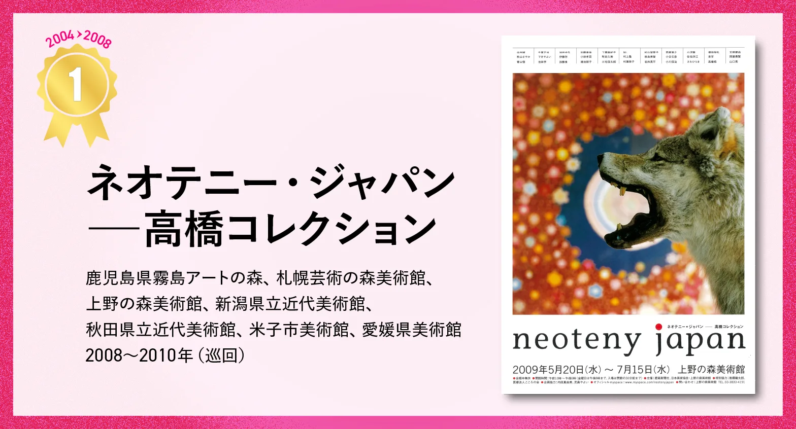 日本屈指の現代美術のコレクターとして知られる精神科医・高橋龍太郎さんが収集した作品を展示し、1990年代〜2000年代における日本の現代美術の流れと動向をたどった「ネオテニー・ジャパン―高橋コレクション」展が第1位に選ばれました!