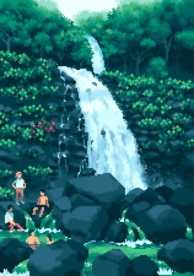 1990年生まれの豊井は、ほかの多くの同世代と同じように子供時代からゲームに親しんでいた。同時に絵の制作も行っていた彼は、2011年頃のTumblrでのGIFアニメーションの流行に触発されピクセルアートを描き始めるようになった。現実の風景を見るのと同じくらいに、様々な視覚的なメディアに囲まれるようになった現代の私たちは、風景の経験とメディアの経験の双方から影響を受けながら成長していく。ゆえに豊井がゲームのピクセルアートの表現を、自身が風景を描く際に参照するのも自然なことだったと言えるだろう。