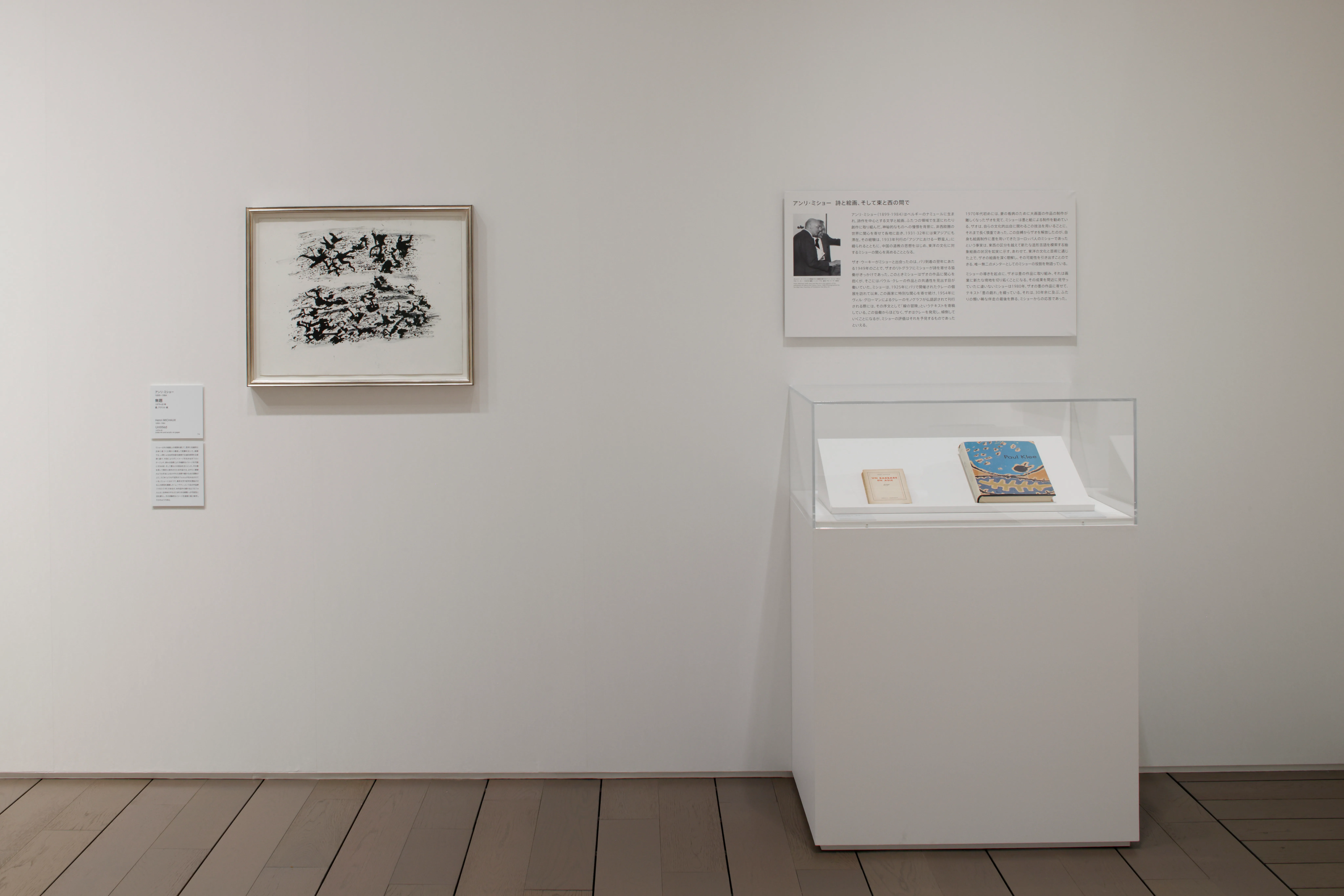 とはいえ、大まかに分類すれば、第1章と第3章はヨーロッパ諸国間、あるいは欧米内における相互的な影響関係を照らし出しており、第2章と第4章は西洋から東洋への影響、より厳密に言えば、西洋からの影響を受けて、東洋が自己を再発見する過程が照らし出されている。筆者としては、東洋から西洋への影響、すなわち、藤島、藤田、小杉、ザオらがヨーロッパやアメリカの芸術家たちに及ぼしたインパクトがわかるとなおよかったと感じた。美術史家ミン・ティアンポは「芸術における革新が〈中心〉で起こり、〈周縁〉に伝播するという美術史的先入観をしりぞけ、具体美術協会のリーダー・吉原治良の言葉を引きながら、美術史の脱中心化のためには「東洋と西洋の作家たちが互いに影響を及ぼしあう」点に着目すべきであると説く(*6)。 その意味では、年齢差にもかかわらずザオと深い親交を結んだベルギー生まれの作家アンリ・ミショーが晩年に墨を用いて制作したドローイングは際立って印象的であった。