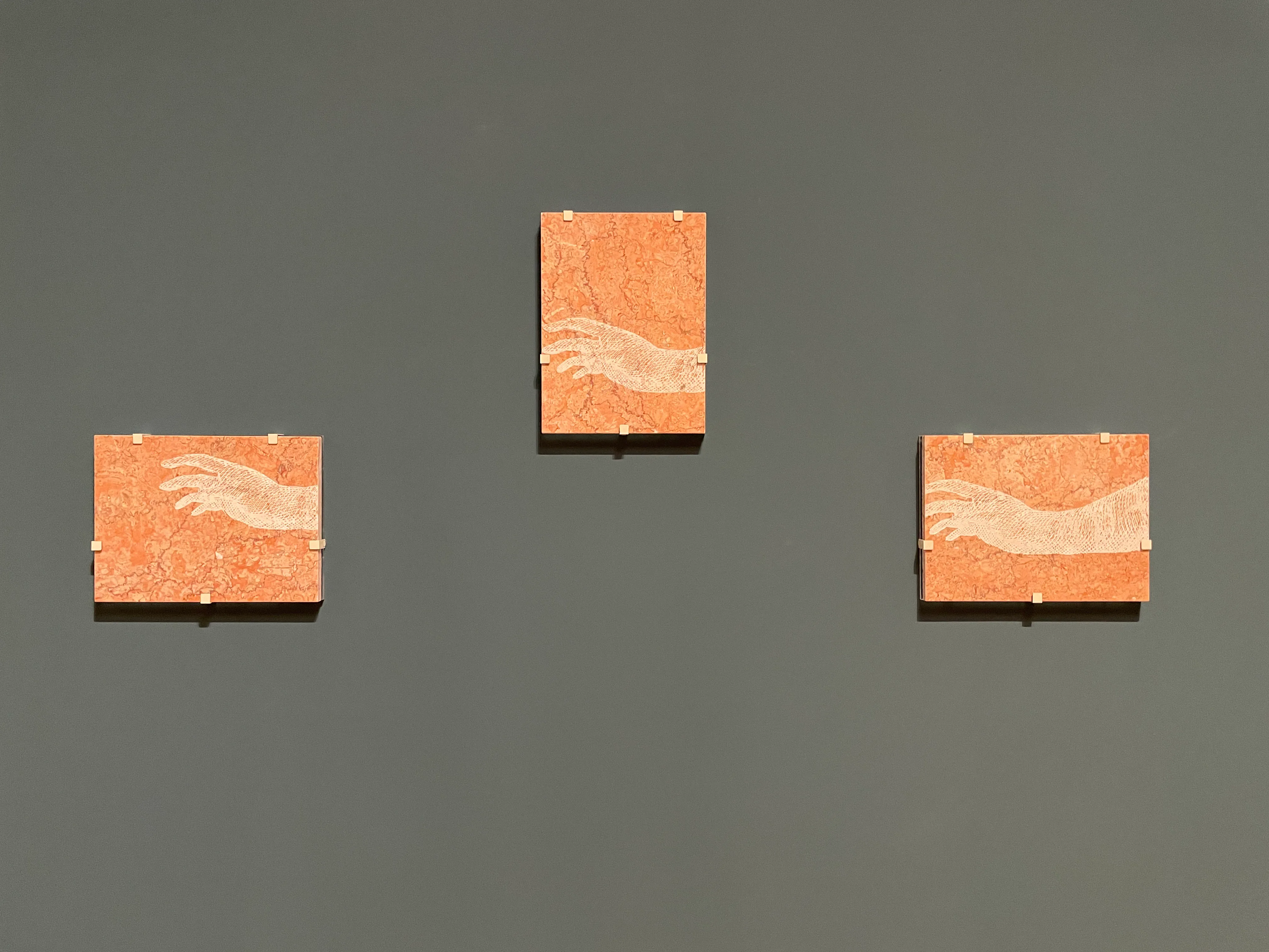 そのすぐ横の壁では、見せもの小屋で展示され、死してなお展示物扱いされたジオロを好奇心の標本というアーカイヴから解放する試みが行われている。アバドは11枚のピンクの大理石にジオロの刺青がある手を再現し、幽霊のように彷徨いながら自身の体を取り戻そうとするジオロを哀悼する記念碑に作り替えた。