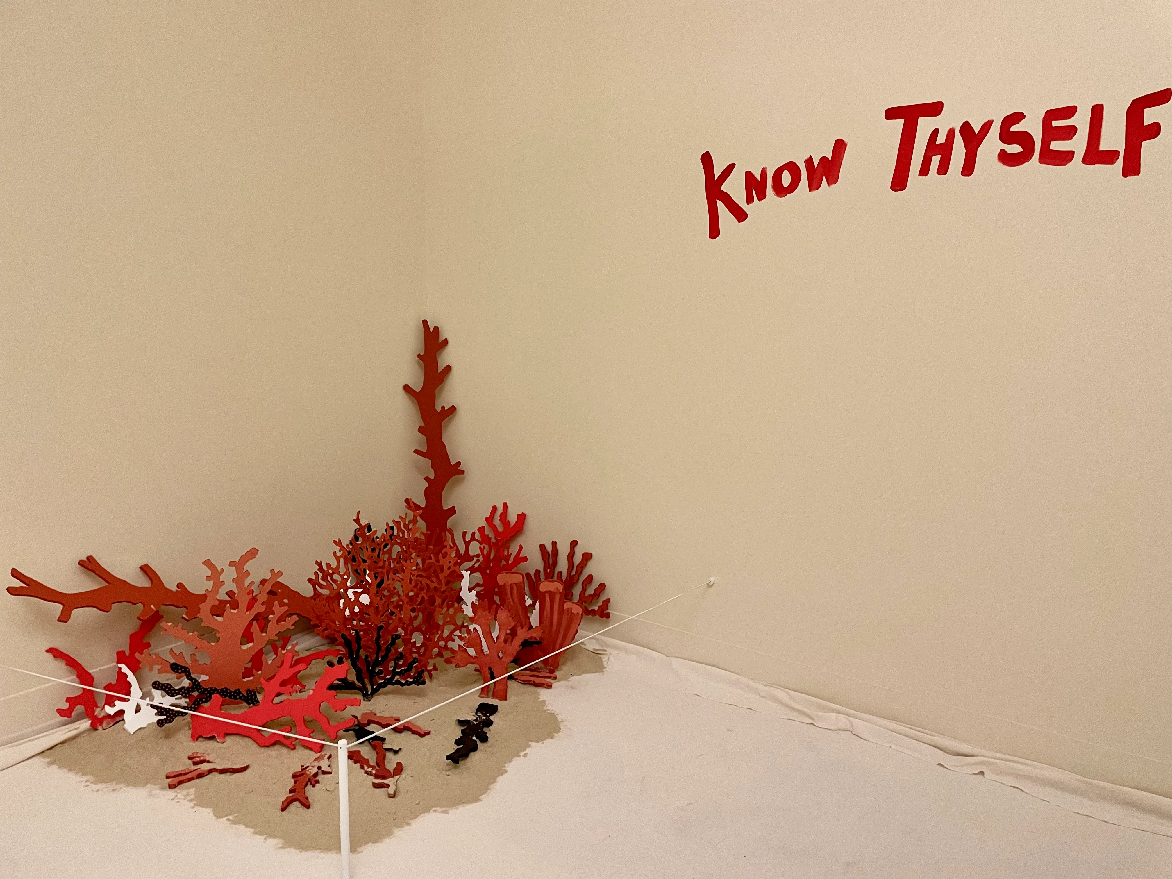 会場風景より、デレーヌ・ル・バス《ピュティアー(汝自身を知れ)》(2023) 撮影:筆者