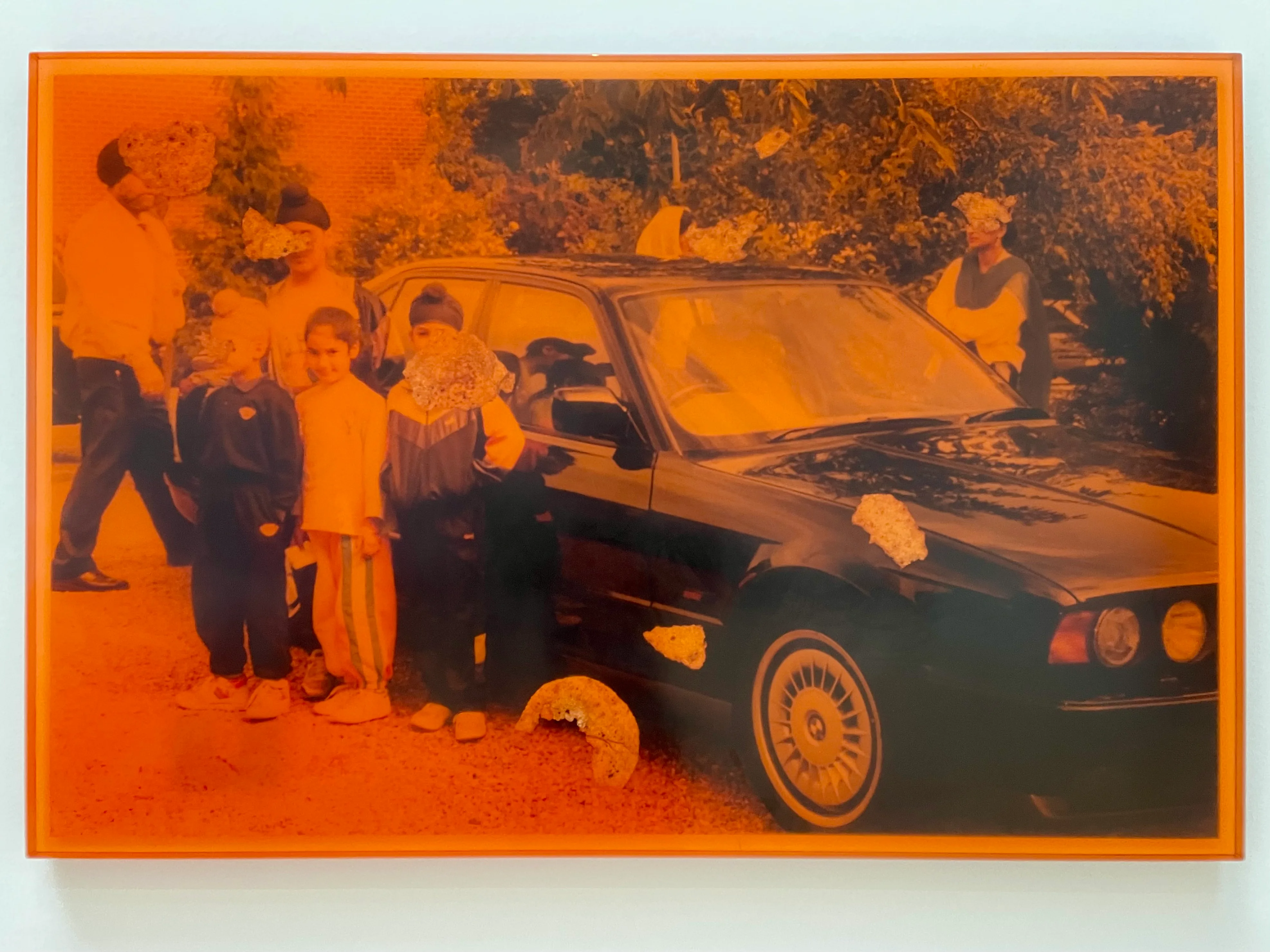 また、車の背後にある家族の思い出の写真は、カウルのインターカルチュラルなアイデンティティとその葛藤を顕著に表している。スコットランドの国民的炭酸飲料「Irn-Bru(アイアンブルー)」を連想させるオレンジ色の樹脂に包まれた家族写真は、ところどころちぎったロティ(ナンのような平たいパン)の切れ端によってカウル以外の顔の判別を困難にしている。