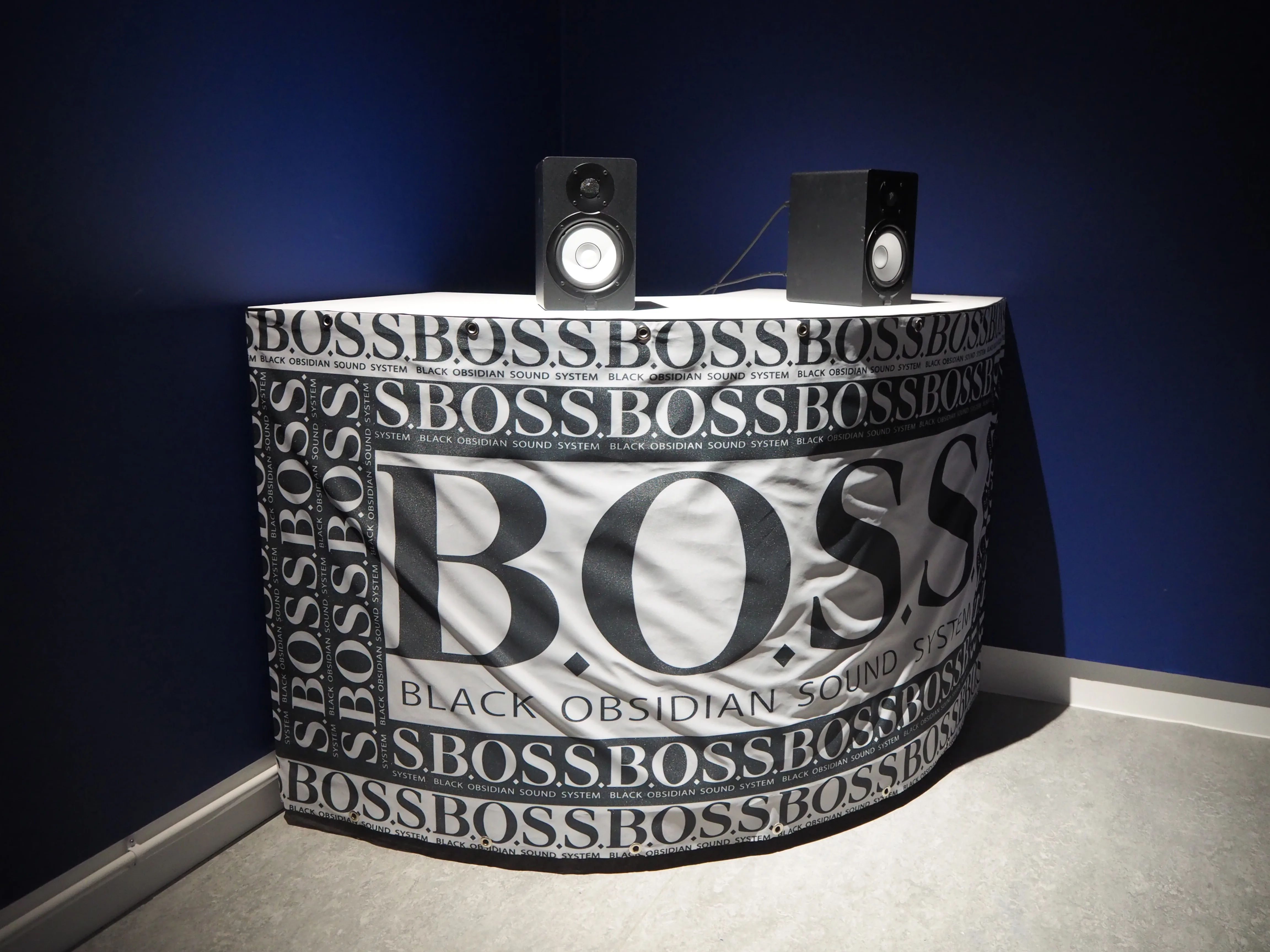 会場のもっとも奥に位置していたのは、ブラック・オブシディアン・サウンド・システム、通称B.O.S.S.の展示スペースだ。彼らは南ロンドンを拠点とし、クィア、トランス、ノンバイナリーの黒人/有色人種のアーティストによって構成されている。
