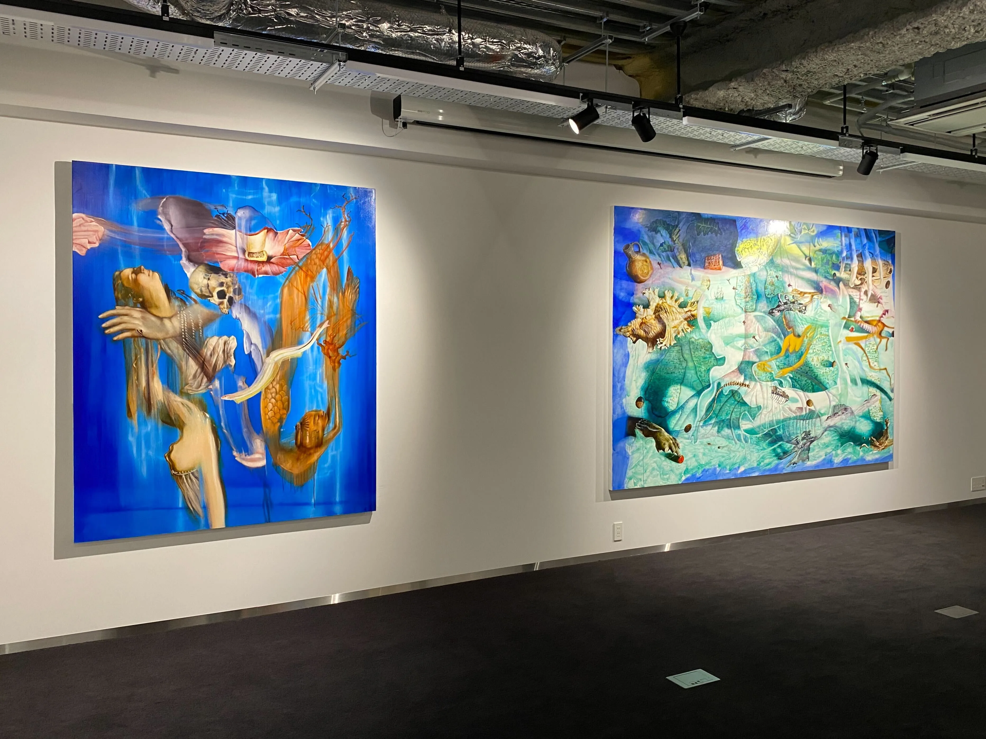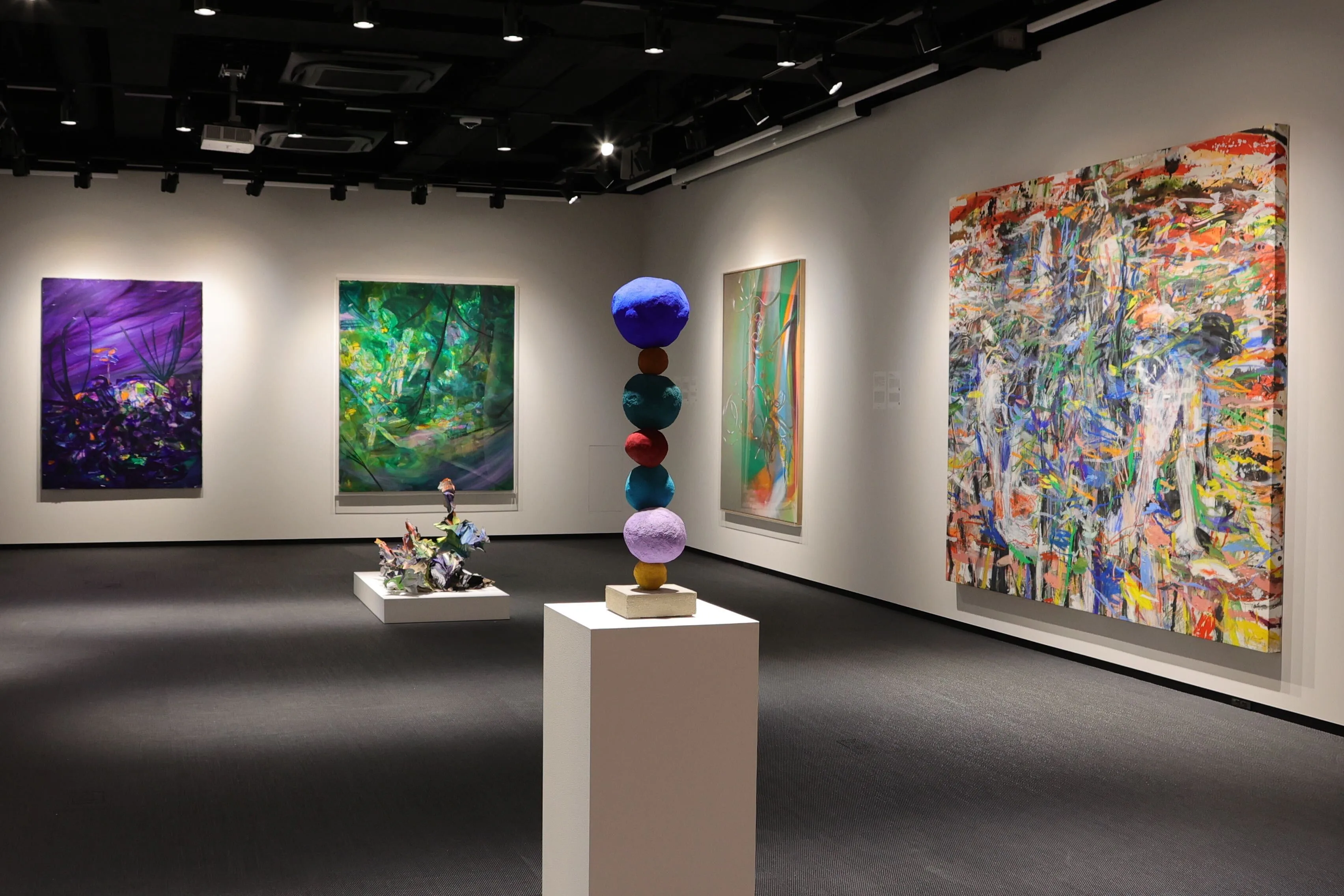 本展は地下1階から順に階層を上がっていくような構成となっており、最初のフロア(地下1階)では抽象絵画がテーマとなっている。イケムラ・レイコ、 カタリーナ・グロッセ、ベルナール・フリズなど、絵画が時代遅れとされていた1970年代に新しい絵画の可能性を探求した抽象画家たちの作品が展示される。