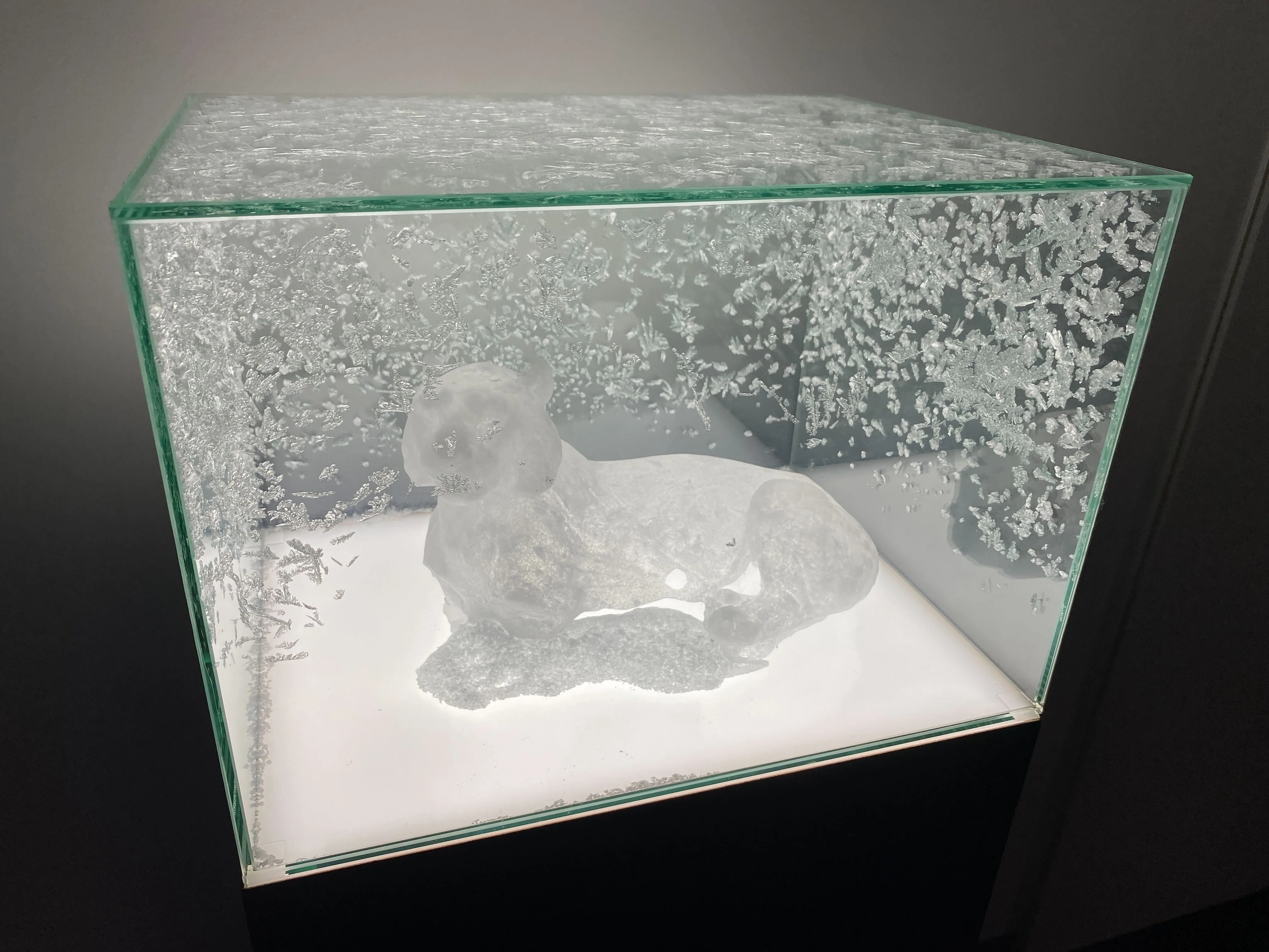 このような同時代性というキーワードは、3階、4階の展示室でも感じられる。日本人女性アーティストをテーマにした3階の展示室では、画像編集ソフトのPhotoshopで下絵を作り、絵画化する今津景の作品が、さわひらきの飛行機が室内をゆっくりと飛び回る映像作品に出迎えられる4階の展示室では、宮永愛子の常温で気化するナフタリンという物質を用いた彫刻作品や、宮島達男のLEDカウンターを用いた作品が展示されるなど、同時代におけるアート作品の素材や技法の幅広さも感じられるはずだ。