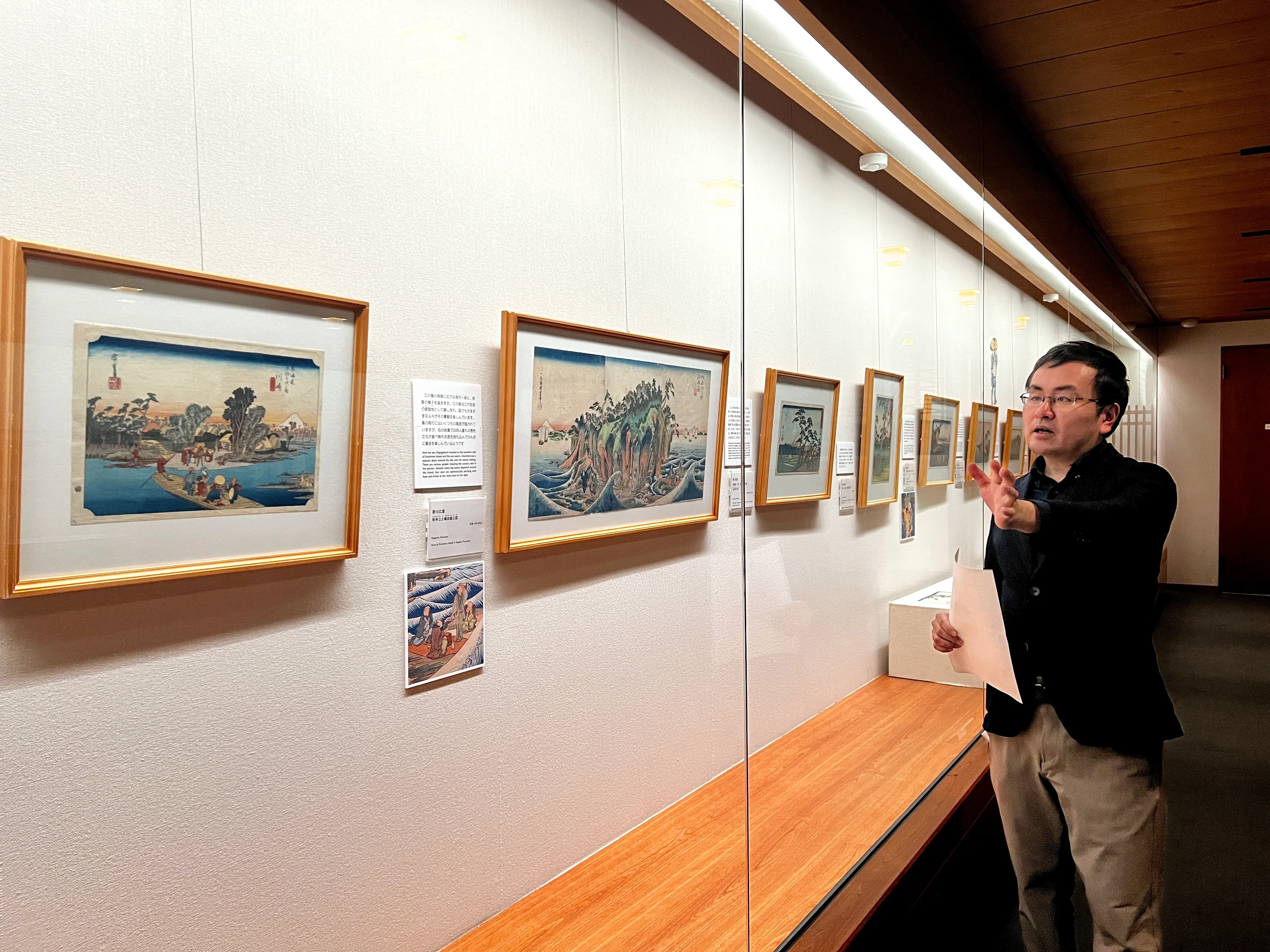 「広重の浮世絵では、風景の背景にいる人物が個性豊かで、誰ひとりとして手抜きがありません。おじさんたちはいわゆるモブ、背景の人物ですが、そこに注目することで、(鑑賞者は)絵をより詳細に見るようになる。