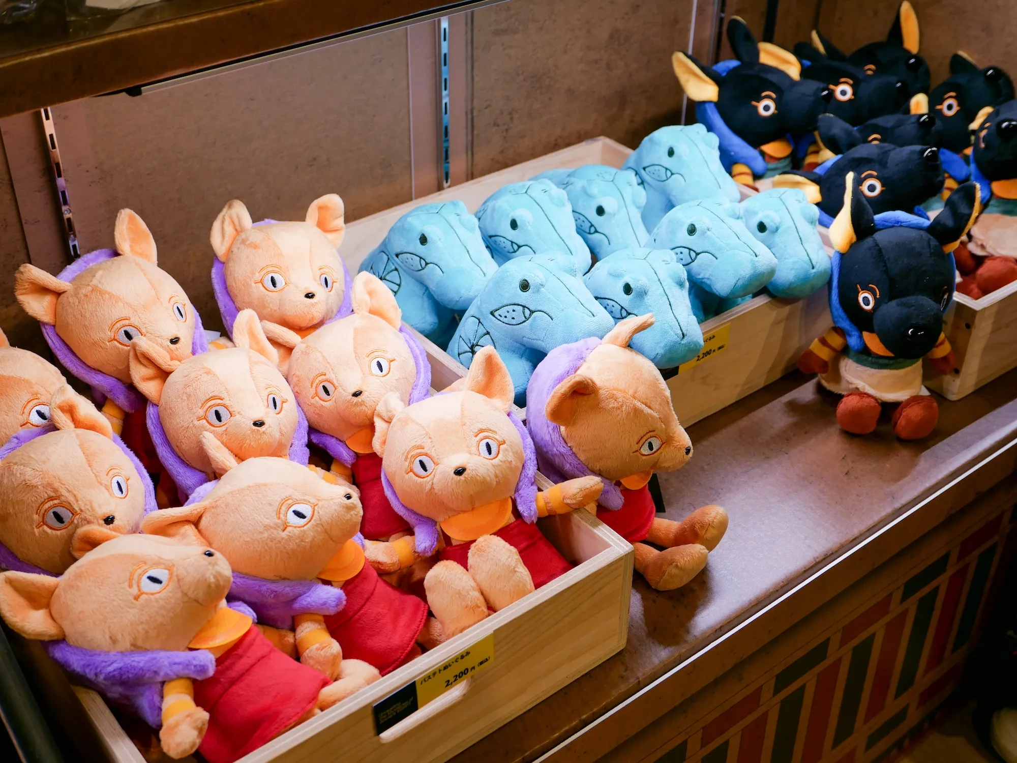 冥界の神アヌビス(ジャッカルの姿)と天空の神バステト(ネコの姿)のキュートなぬいぐるみ。座った姿で好きな場所に置ける仕様になっている。価格は2200円(税込)。