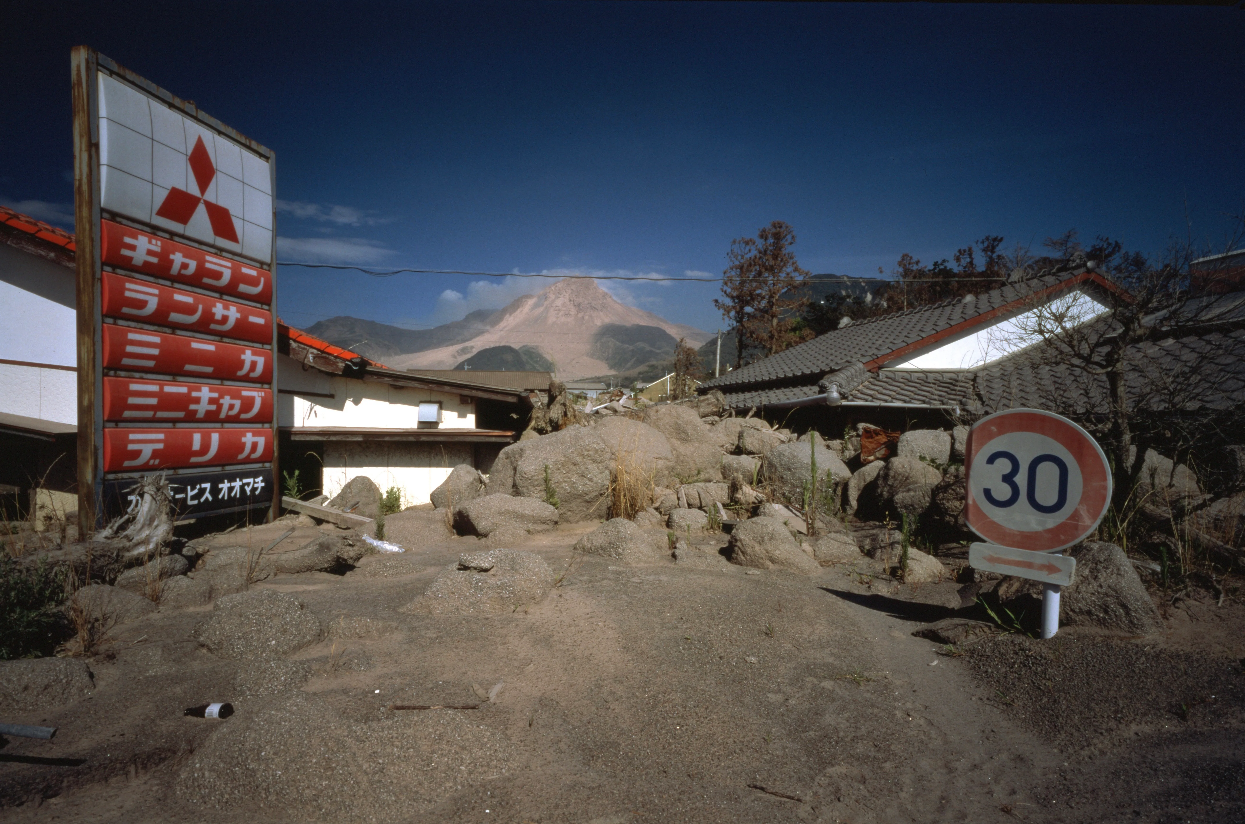 大火砕流の後の1993年〜95年、まだ続く火砕流や土石流から人々が避難し、時が止まってしまったかのような無人の街を写していたのは写真家の砂守勝巳だ。95年に開催された個展「黙示の町」(銀座/大阪ニコンサロン)でこれらの写真を発表したが、やはり阪神淡路大震災で機会を逸したのか、写真集の出版には至らなかった(同年、個人史的な写真集『漂う島 とまる水』(クレオ)で第15回土門拳賞、第46回日本写真協会新人賞受賞)。2020年には、椹木の企画・監修で個展「砂守勝巳 黙示する風景」が原爆の図 丸木美術館で開催された。