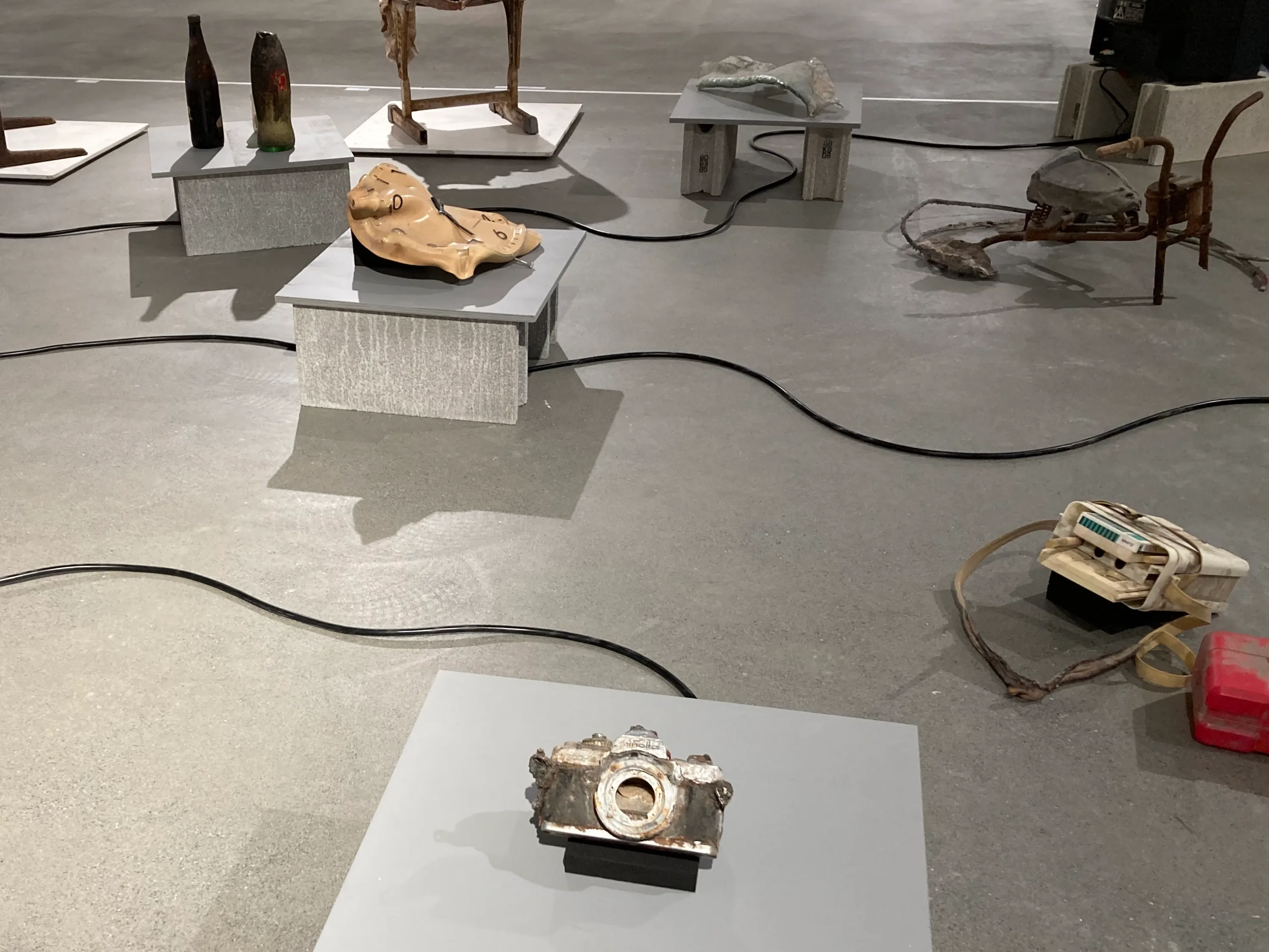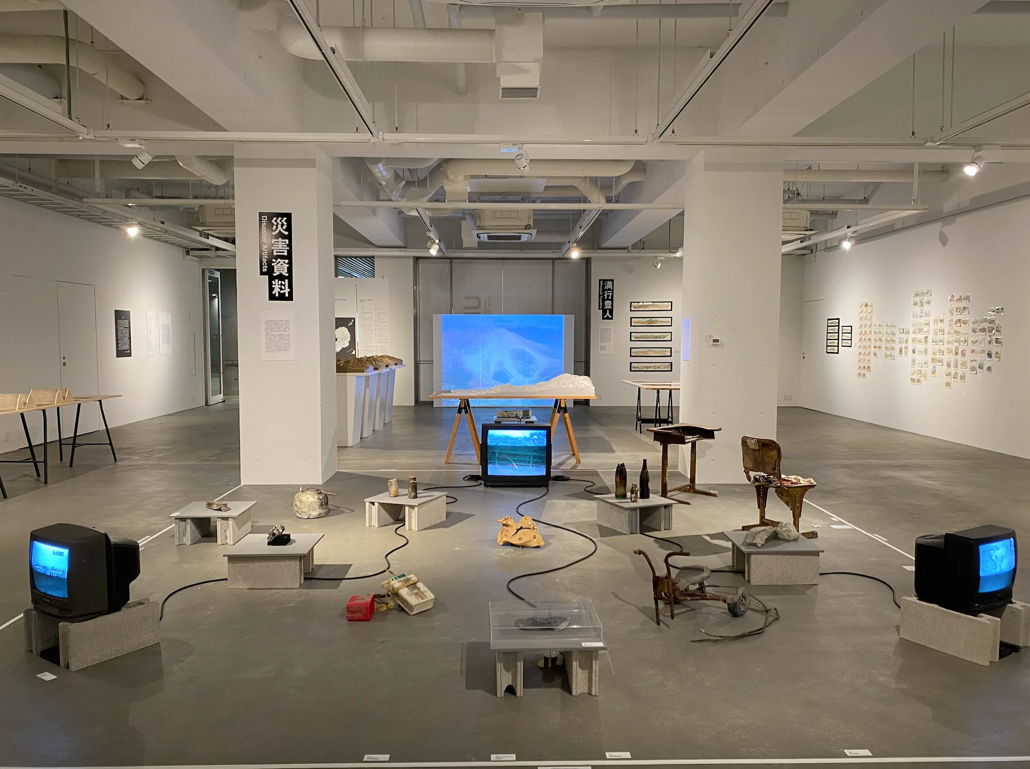 つまり、再び200年後に噴火が予想され、現在は「事後」ではない。だとすれば「災害資料」を過去のモノではなく、「事前」のモノとして、記憶の先取りや予兆として実感することが必要ではないか。被災したモノたち、記者や自衛隊が撮影した映像などをインスタレーションし、客観的なものとしての資料・史料を、個人の表現としての絵画や写真などと同じ地平で見せている。