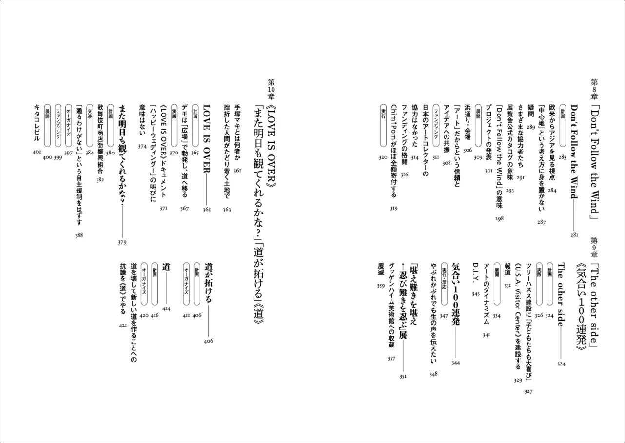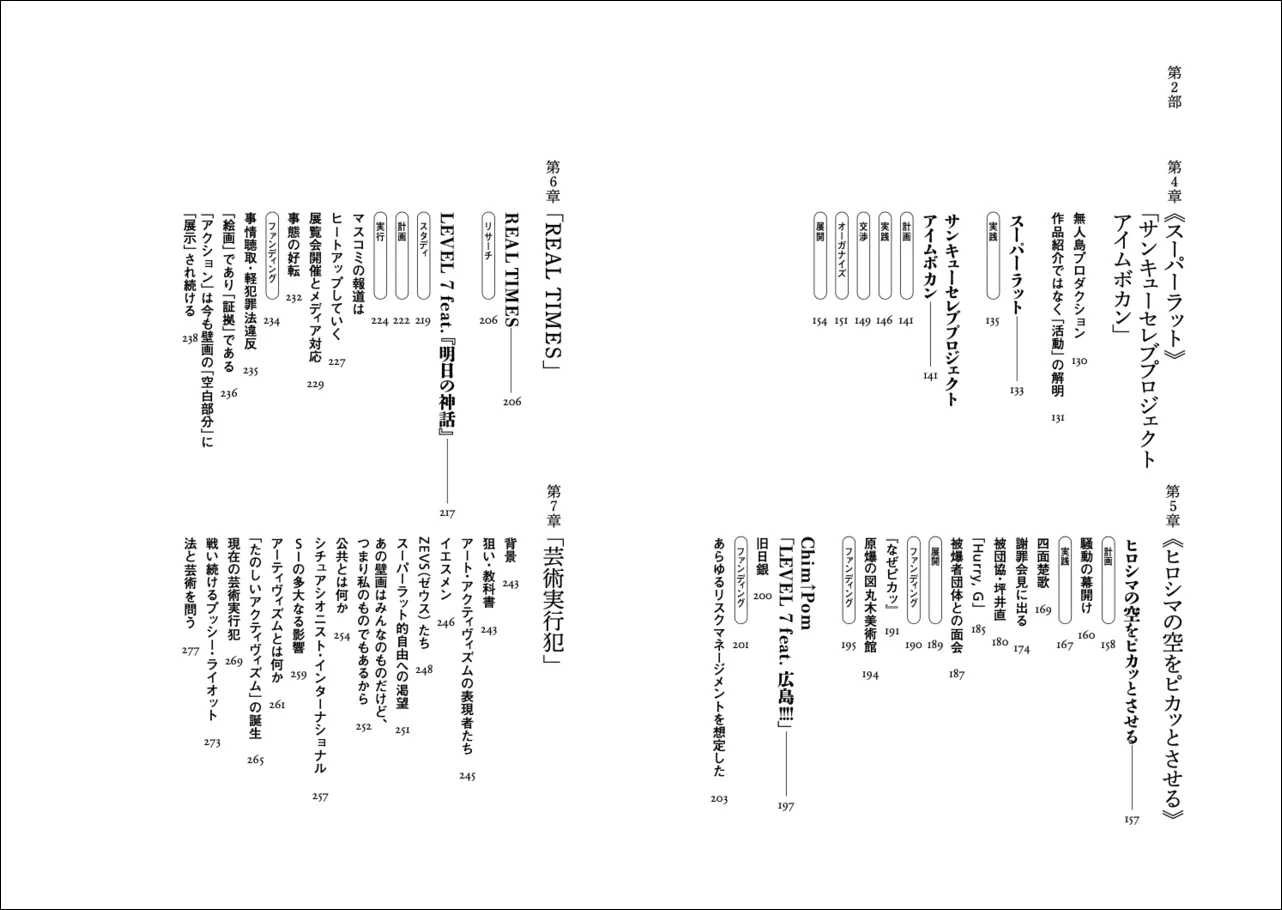 当然、ここで示したグループ分けは、評者の主観的判断(説明の通り、根拠に基づくが)のなせるわざであり、ほかに無数の可能な読み解き方が残されている。断言しよう。この大著は、本当の意味で、「まだ誰にも解読されていない」。ゆえに、『活動芸術論』は、Chim↑Pomの「支持者」にとっても、「批判者」にとっても、すなわち、日本美術史において類例を探すことの難しい、この稀有なアーティスト・コレクティヴになんらかの関心がある、あらゆる人にとって必読の書である。