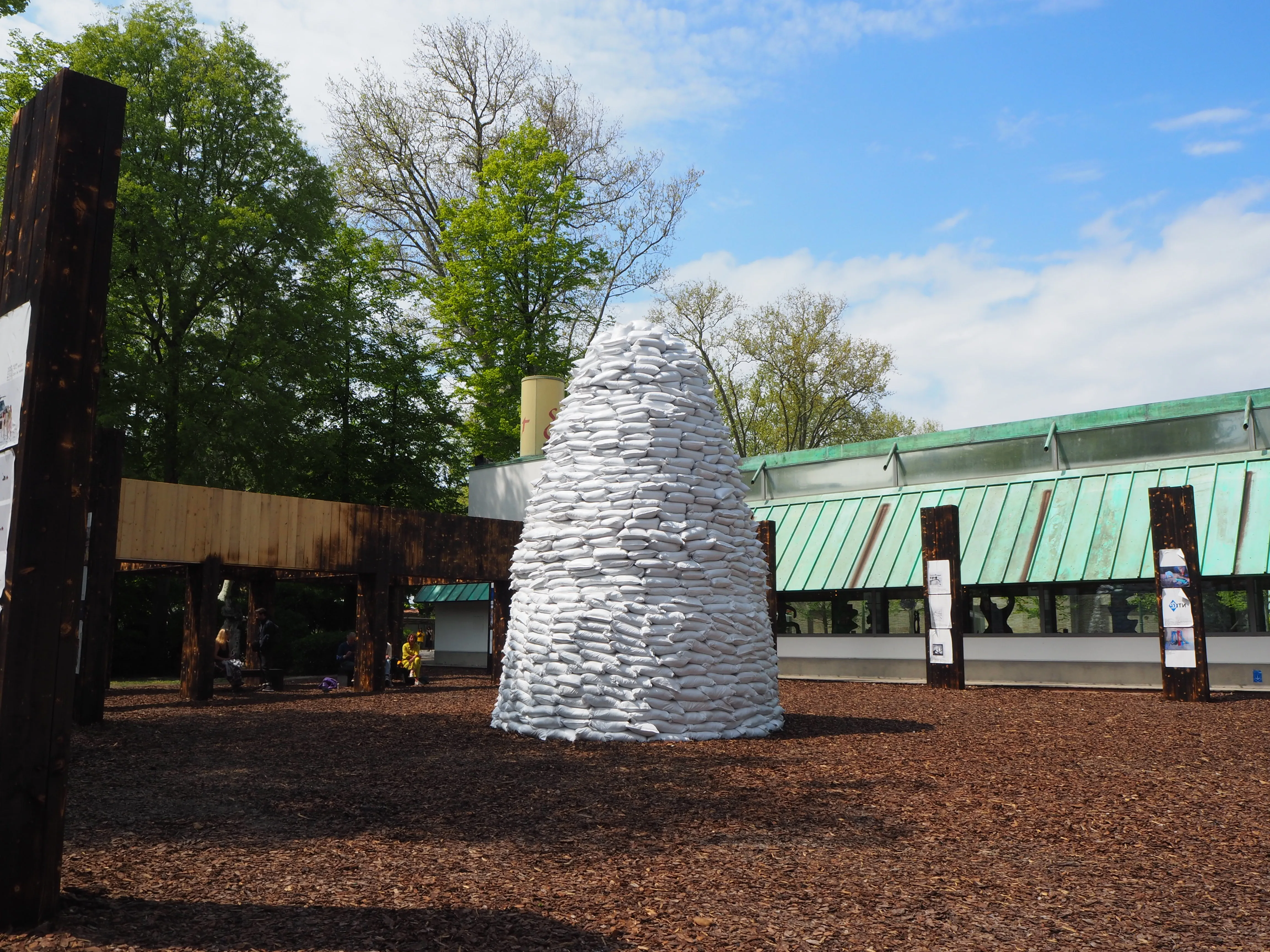 そのいっぽうで、いくつかの重要な課題も残されている。今回が初めての参加となったナミビア館「A Bridge to the Desert」(アーティスト:RENN、キュレーター:マルコ・フリオ・フェラーリオ)はその一例である。イタリア人キュレーターのフェラリオが招へいしたRENNは、素性を明かさないミステリアスなアーティストであると紹介された。しかし、この人物は実際には南アフリカ出身の白人男性であり、観光客向けロッジに作品を提供する商業彫刻家であった。国際芸術祭において、白人中心的な西洋社会が作り出した都合の良いナミビアイメージが流布することを危惧し、同国のアートコミュニティからは激しい講義の声があがった(*5) 。