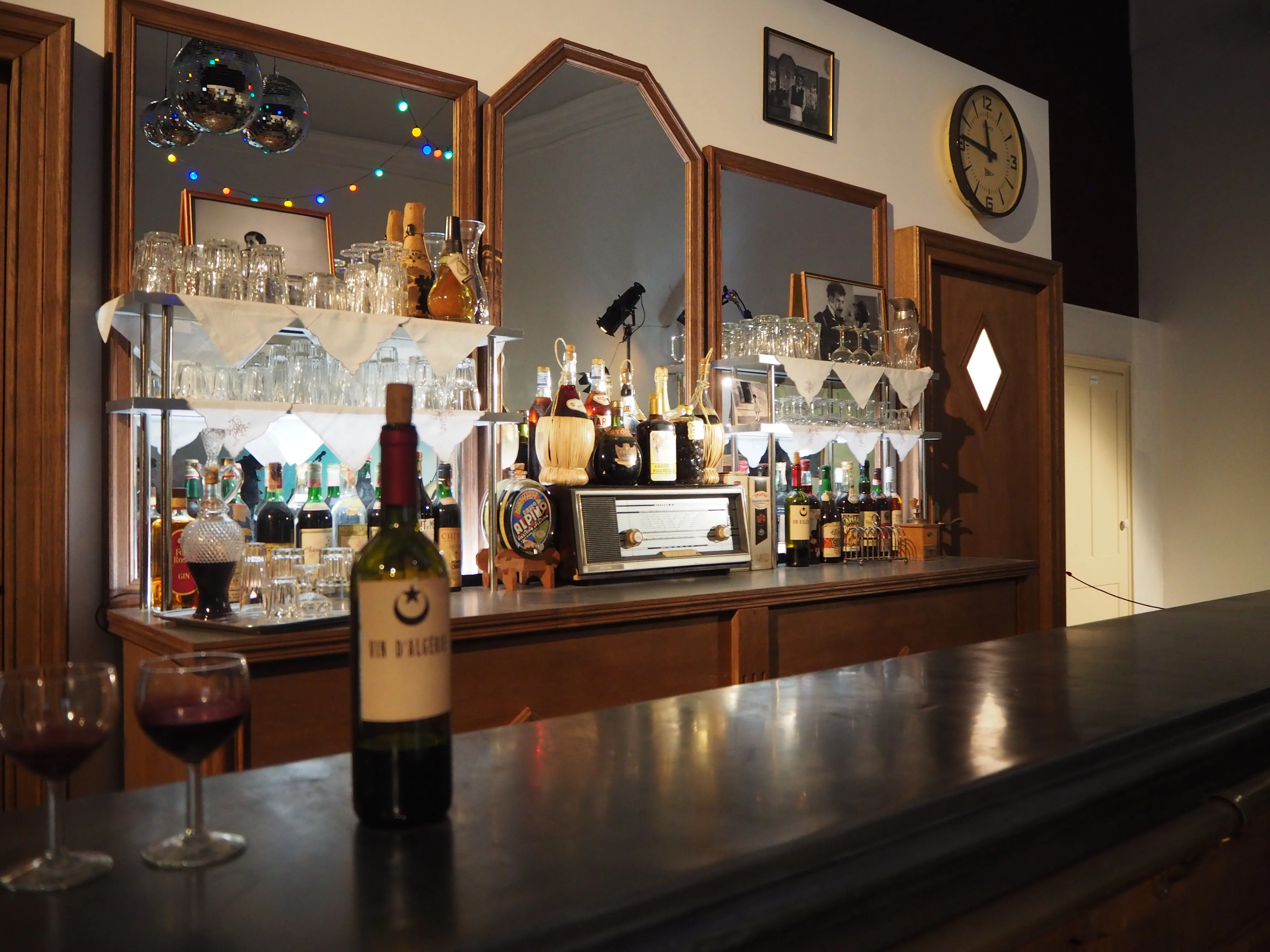 また、入口正面にあるバーカウンターは、エットーレ・スコラ監督『ル・バル』(1983)から着想を得ている。その横には、アーティスト自身がロンドンで暮らす自宅を再現した部屋が用意してあり、移民が多く暮らす南西ロンドンでの生活を垣間見ることができる。最奥の部屋には、ルキノ・ヴィスコンティ「異邦人」(1967)をイメージソースとした木の棺桶が、釘を打たれない状態で置かれている。
