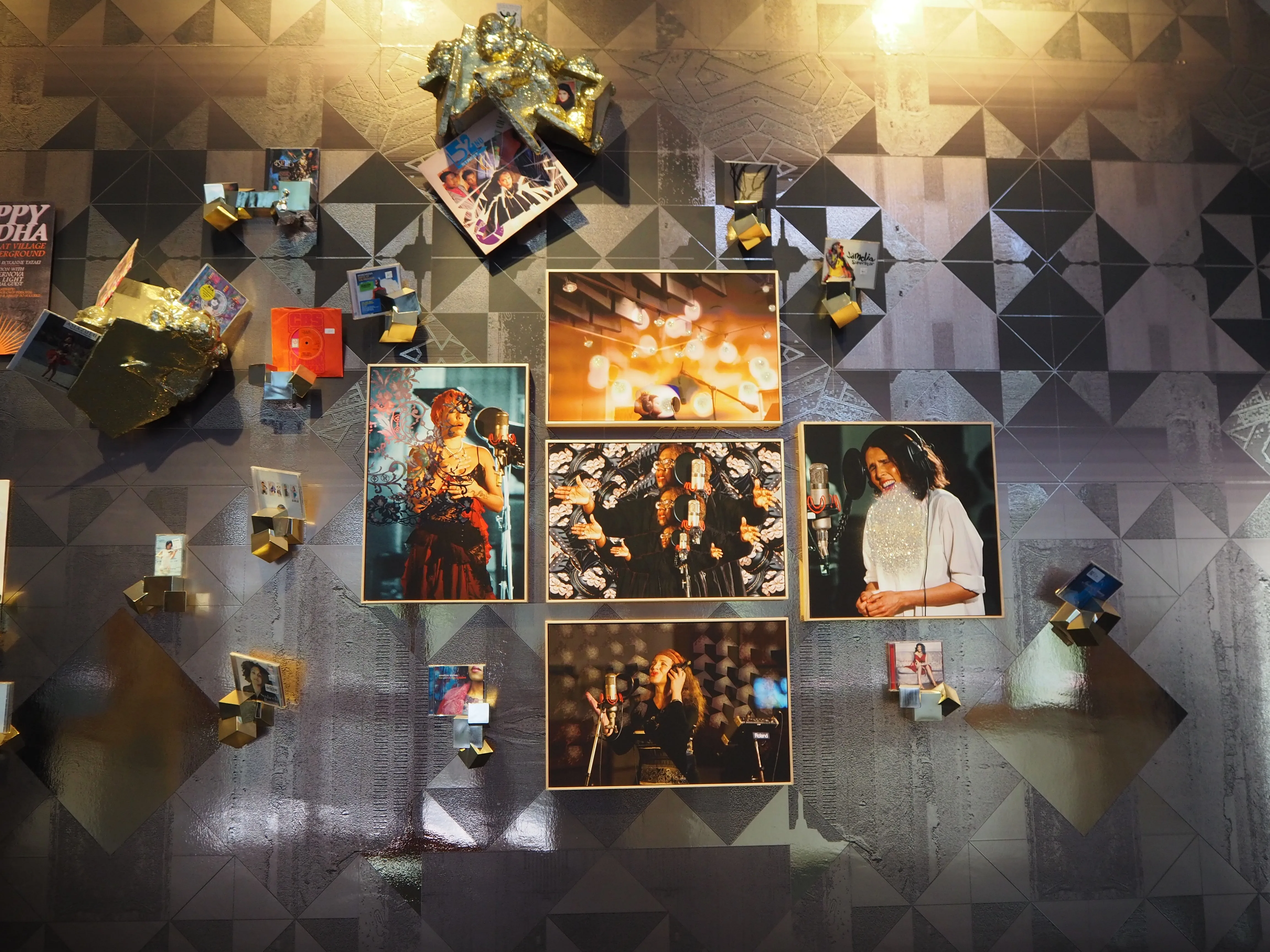 パビリオン内には鑑賞者の姿を反射する金色の幾何学的な彫刻が置かれ、スクリーンには黒人女性ミュージシャンたちの即興演奏が映し出されていた。この金色の彫刻はパイライト(黄鉄鉱)という鉱物をモチーフにしている。黄鉄鉱は美しい色とユニークな形状をしているが、植民地主義的な用語で「Fool’s Gold(愚か者の金)」と呼ばれ、その価値は低く見積もられてきた。このような表現は、日常のなかにいまもなお色濃く残る人種差別的な感覚を炙り出し、私たちに疑問を投げかける。このパビリオンは、英国の帝国主義を振り返るとともに、歴史のなかで透明化されてきた黒人女性の存在を祝福する記念碑的なものとなった。